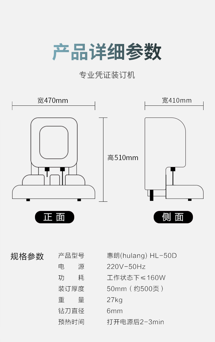 惠朗(huilang)HL-50D自动财务凭证装订机50mm 大功率 白色