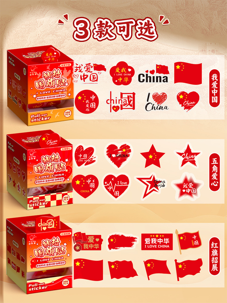 童益星 抽拉贴纸 五角爱心 1卷/100贴 红色(单位:盒)