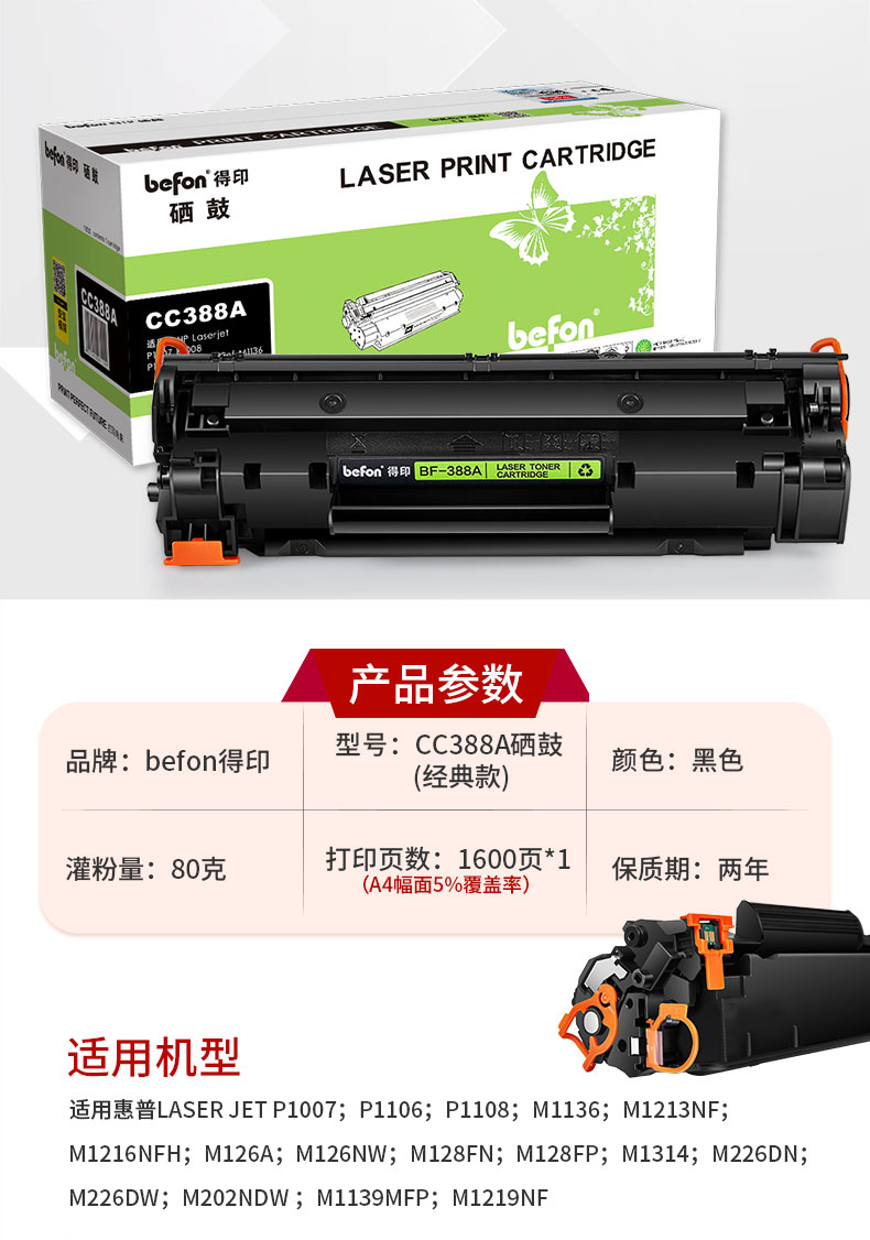 得印388a硒鼓 88a适用惠普cc388a m1136墨盒p1108 p1106 m126a m1213nf m128fn m126nw打印机碳粉盒 黑色