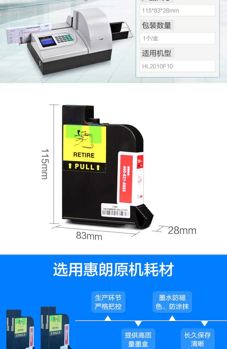 惠朗(huilang)HL2010F10A 全智能自动支票银行账号打印机墨盒 黑色