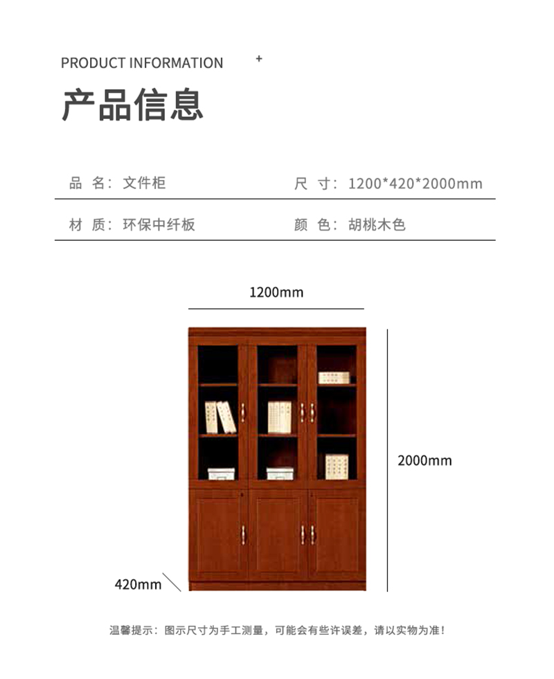 企诺 3门油漆办公高柜下木门文件柜LY3017L1 胡桃色