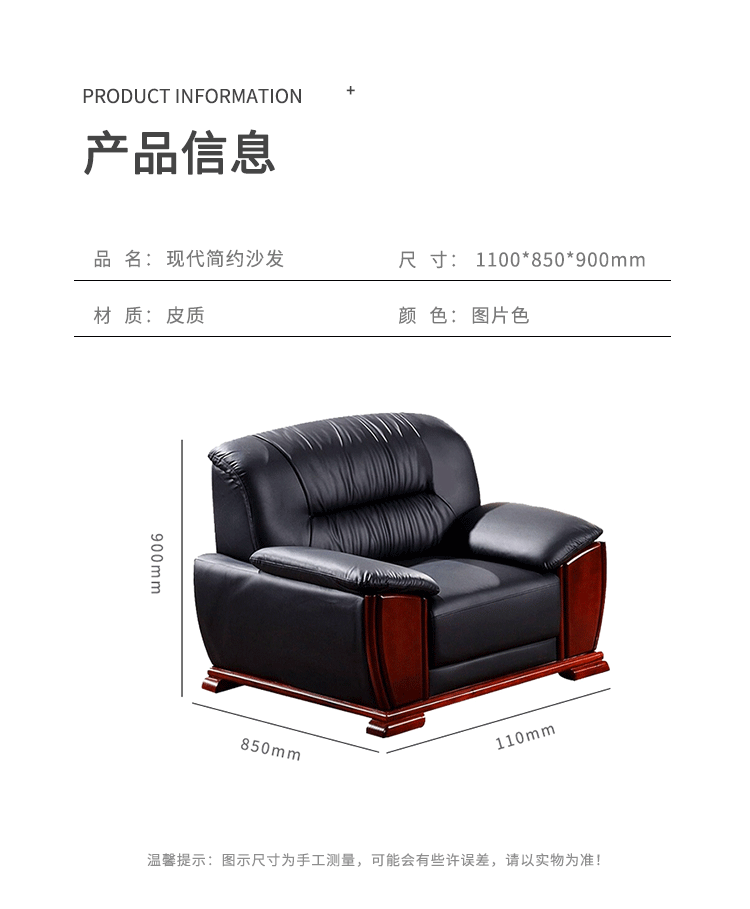 企诺 简约现代单人沙发经典商务办公家SF-1 黑色