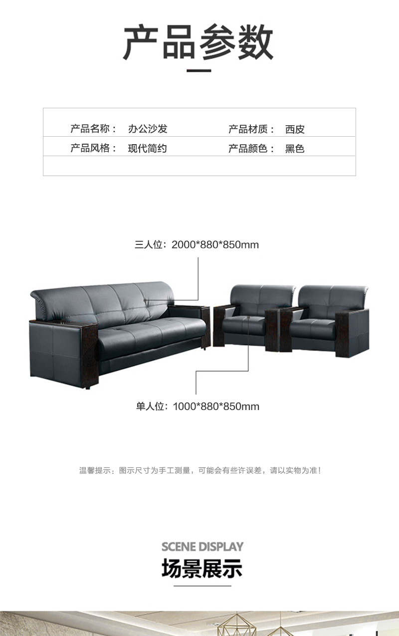 企诺 办公沙发 三人位DA6017 黑色