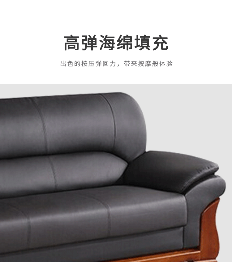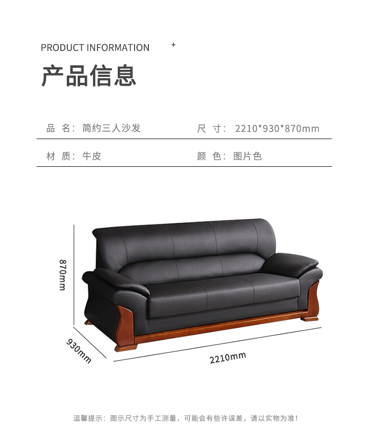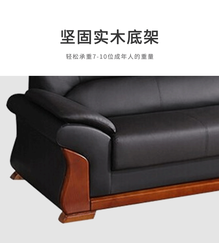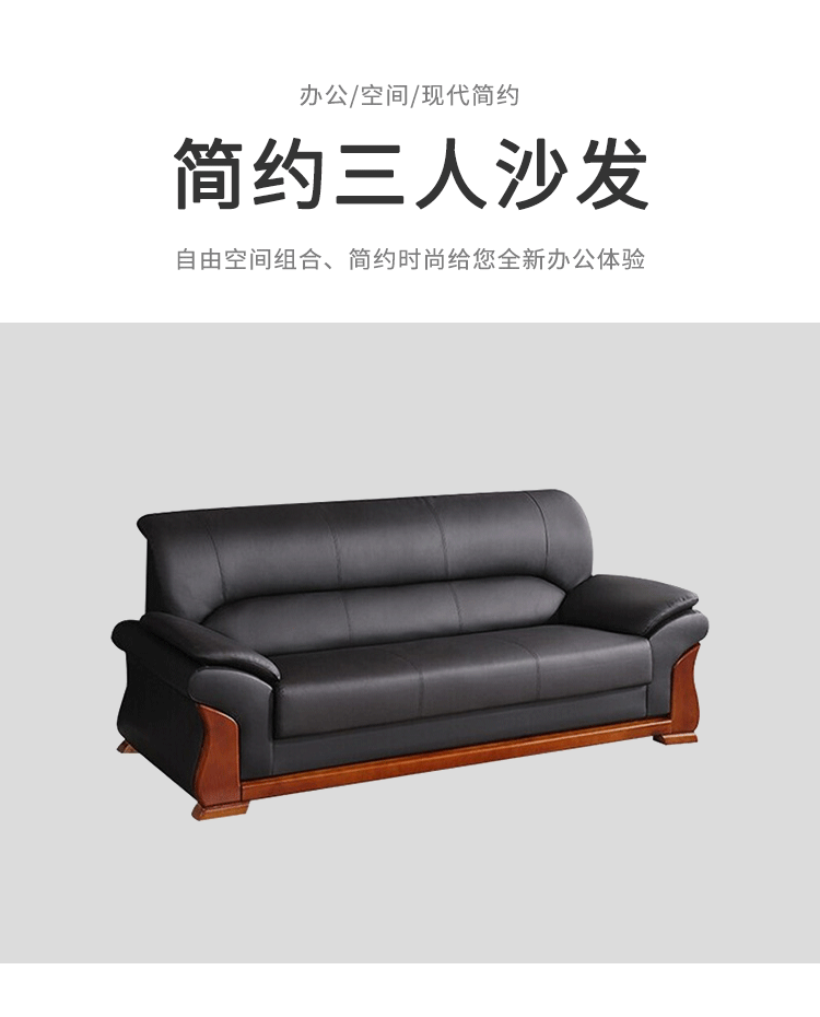 企诺 简约现代商务办公三人沙发大扶手黑色西皮SF-11 黑色