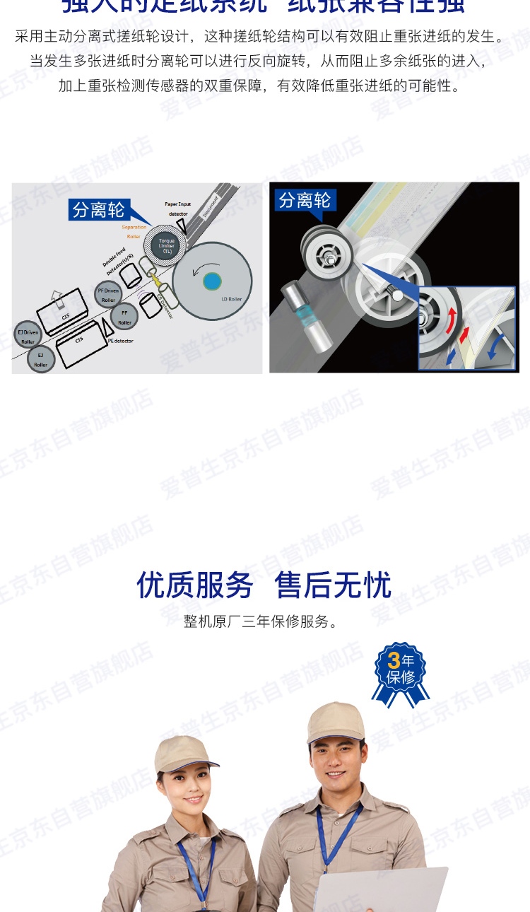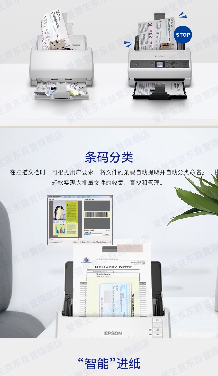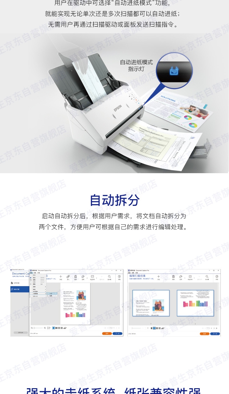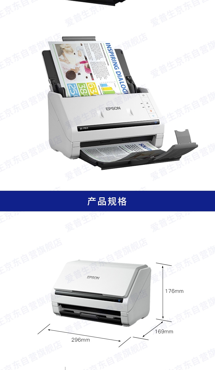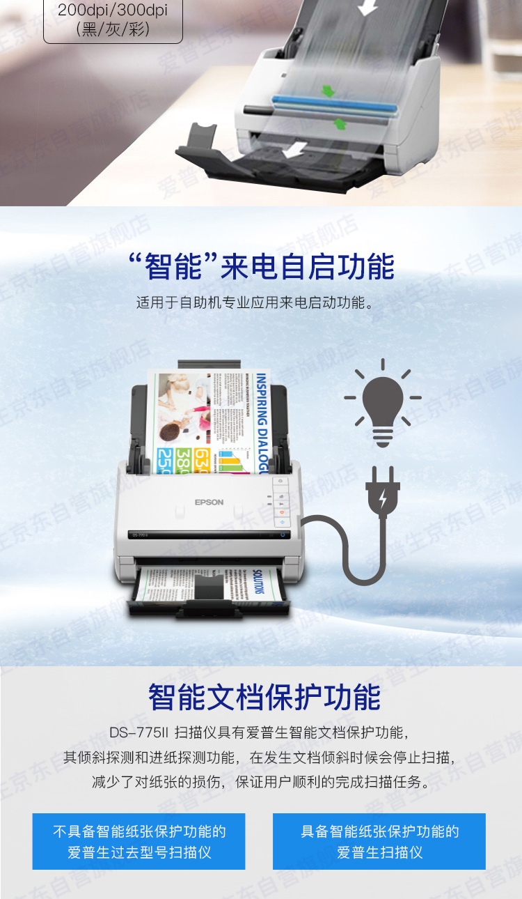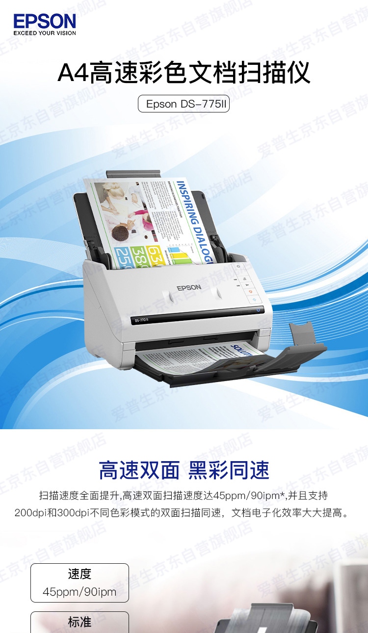 爱普生(EPSON)DS-775II A4幅面 45ppm/90ipm高速自动双面彩色馈纸式扫描仪台 白色