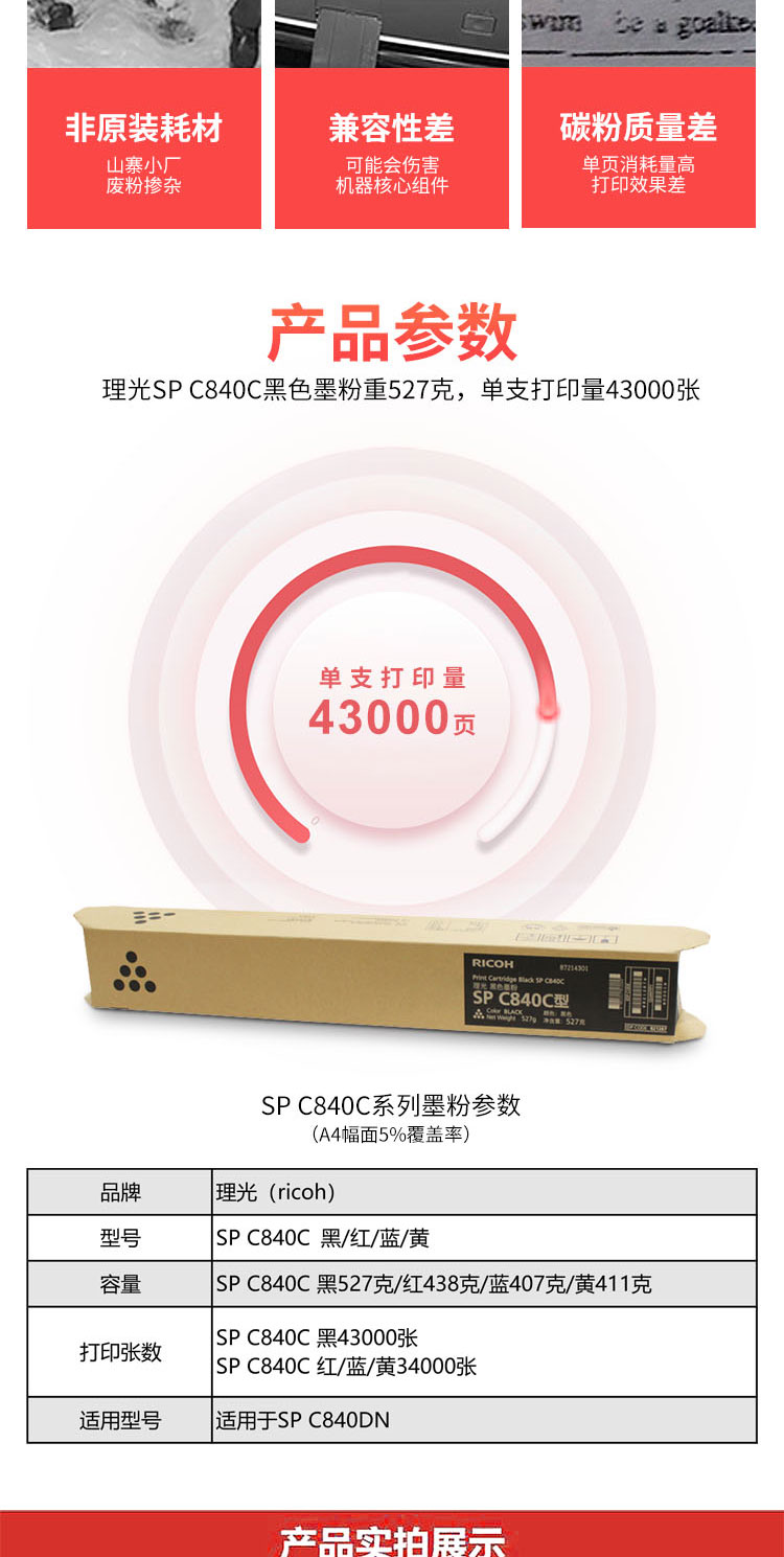 理光(Ricoh)SP C840C型 黑色墨粉盒 适用于SP C840DN 黑色
