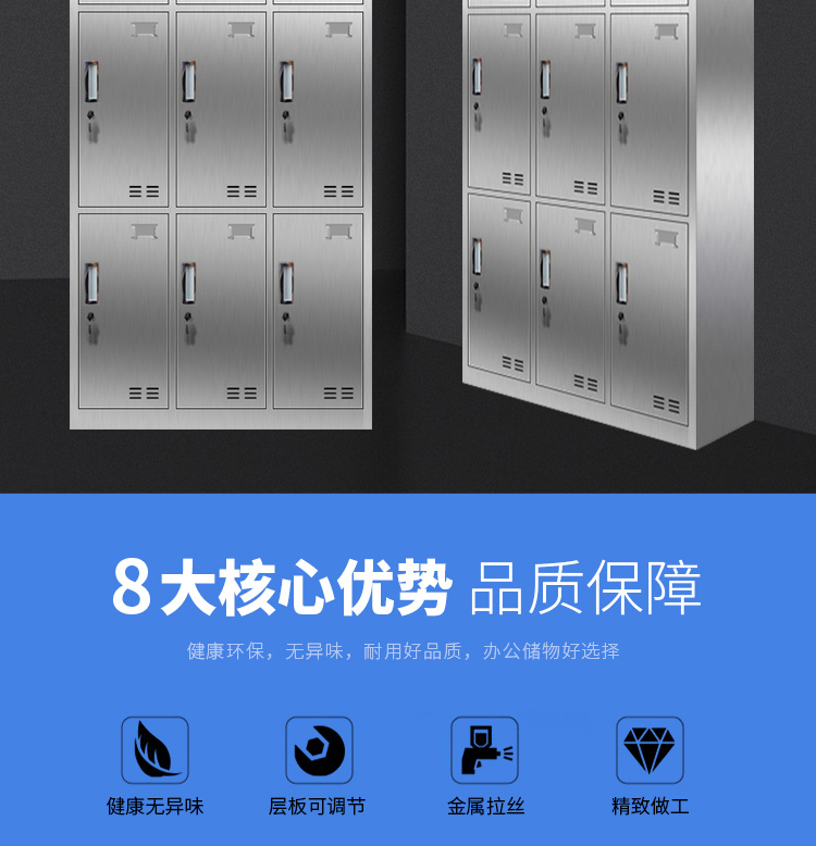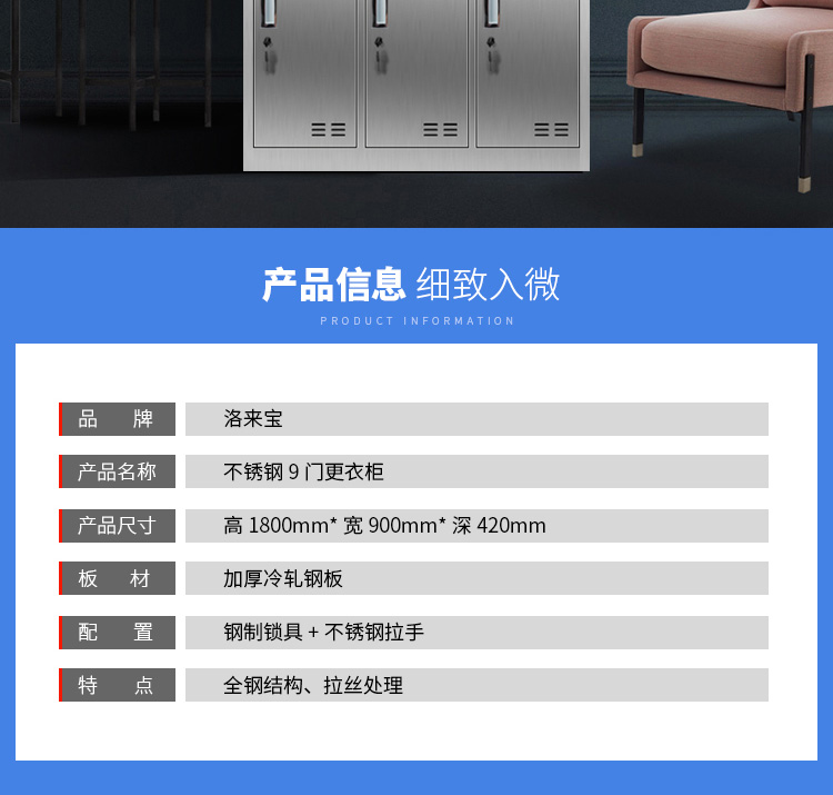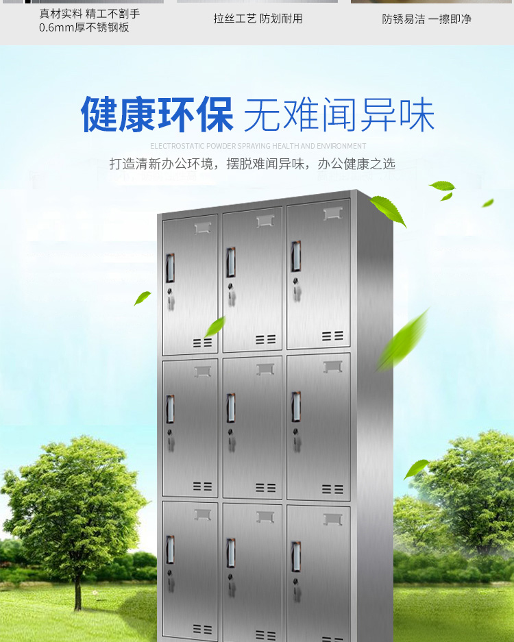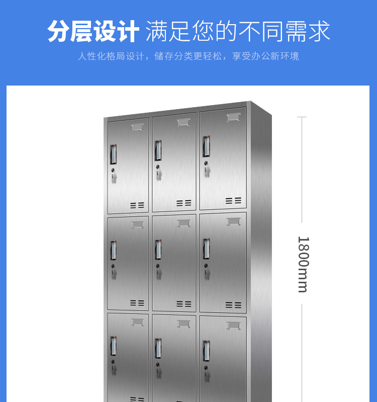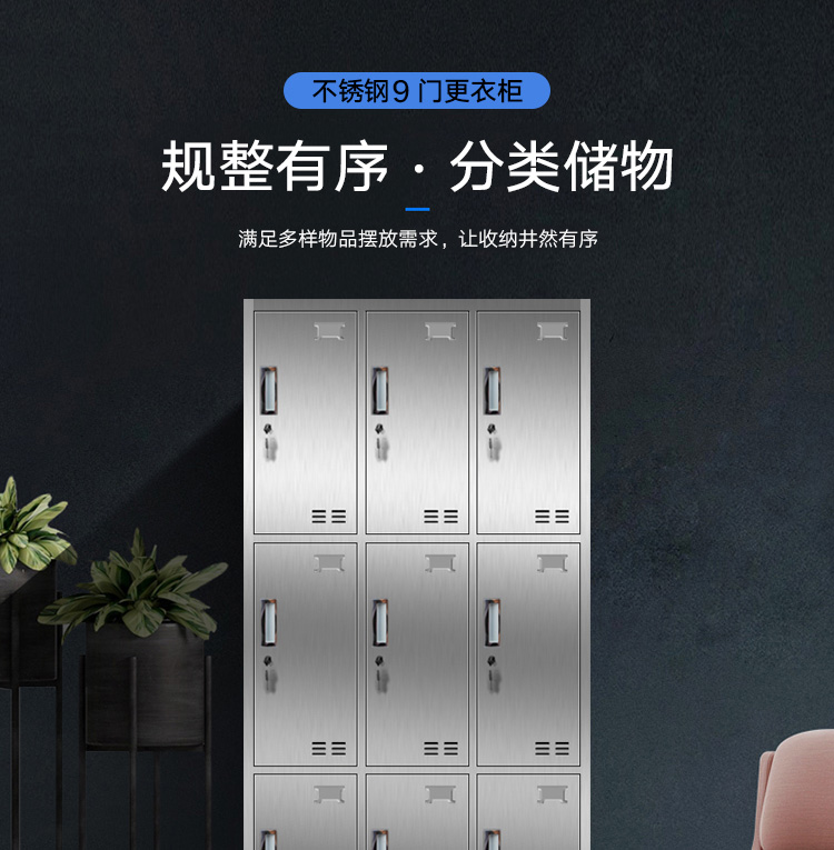 洛来宝不锈钢柜员工更衣储物柜存包柜浴室换衣内物柜防锈防潮201不锈钢9门更衣 银色
