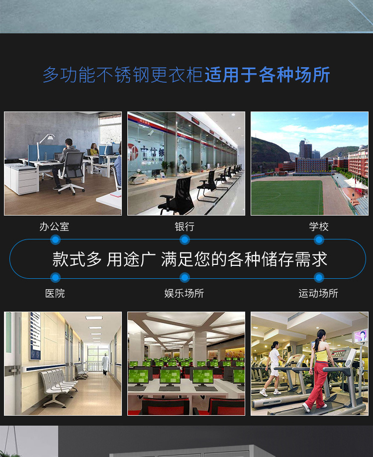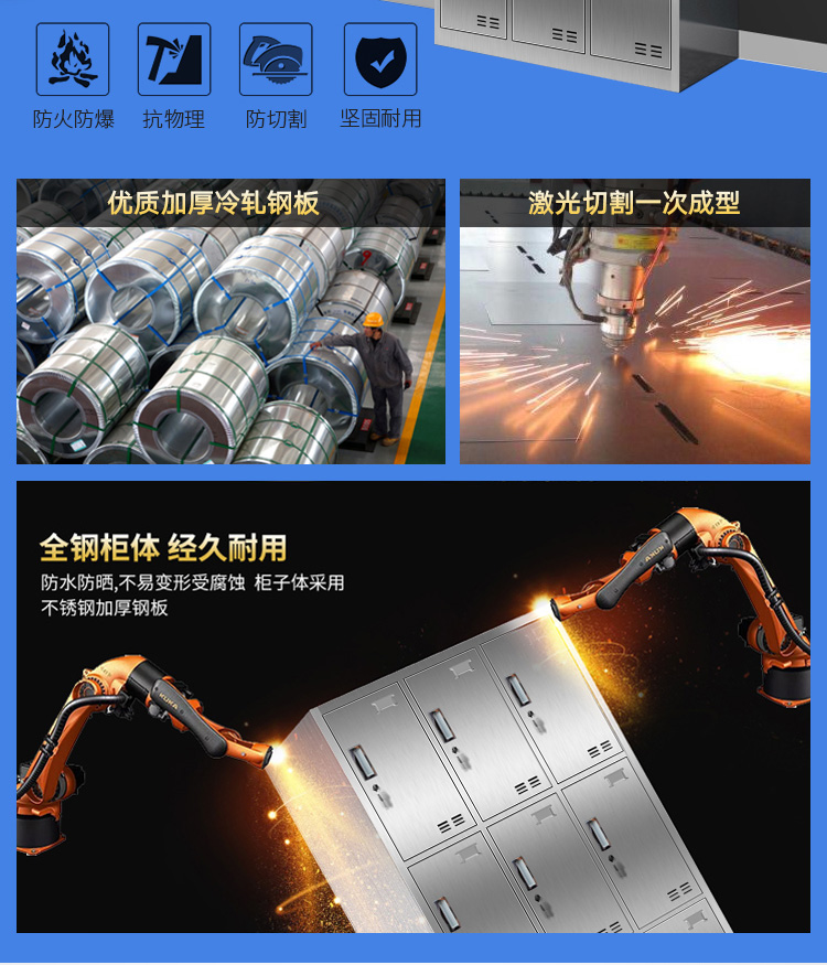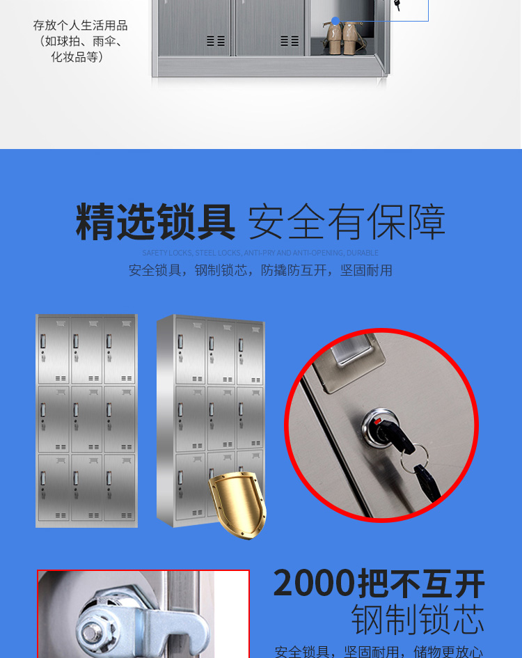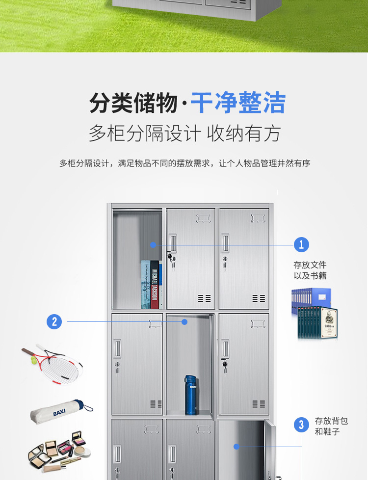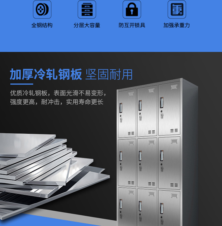 洛来宝不锈钢柜员工更衣储物柜存包柜浴室换衣内物柜防锈防潮201不锈钢9门更衣 银色