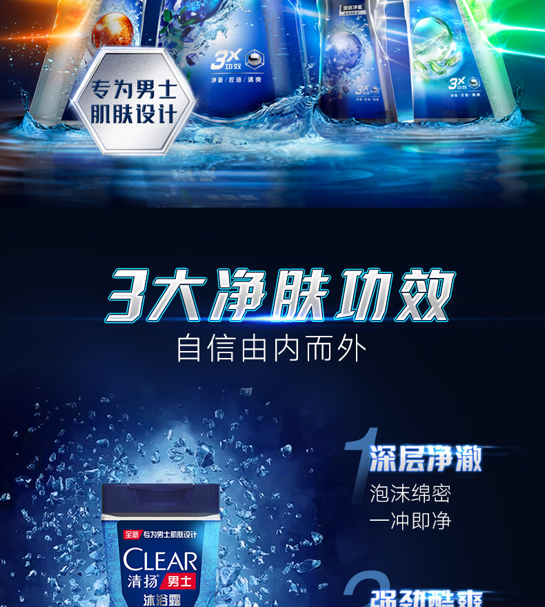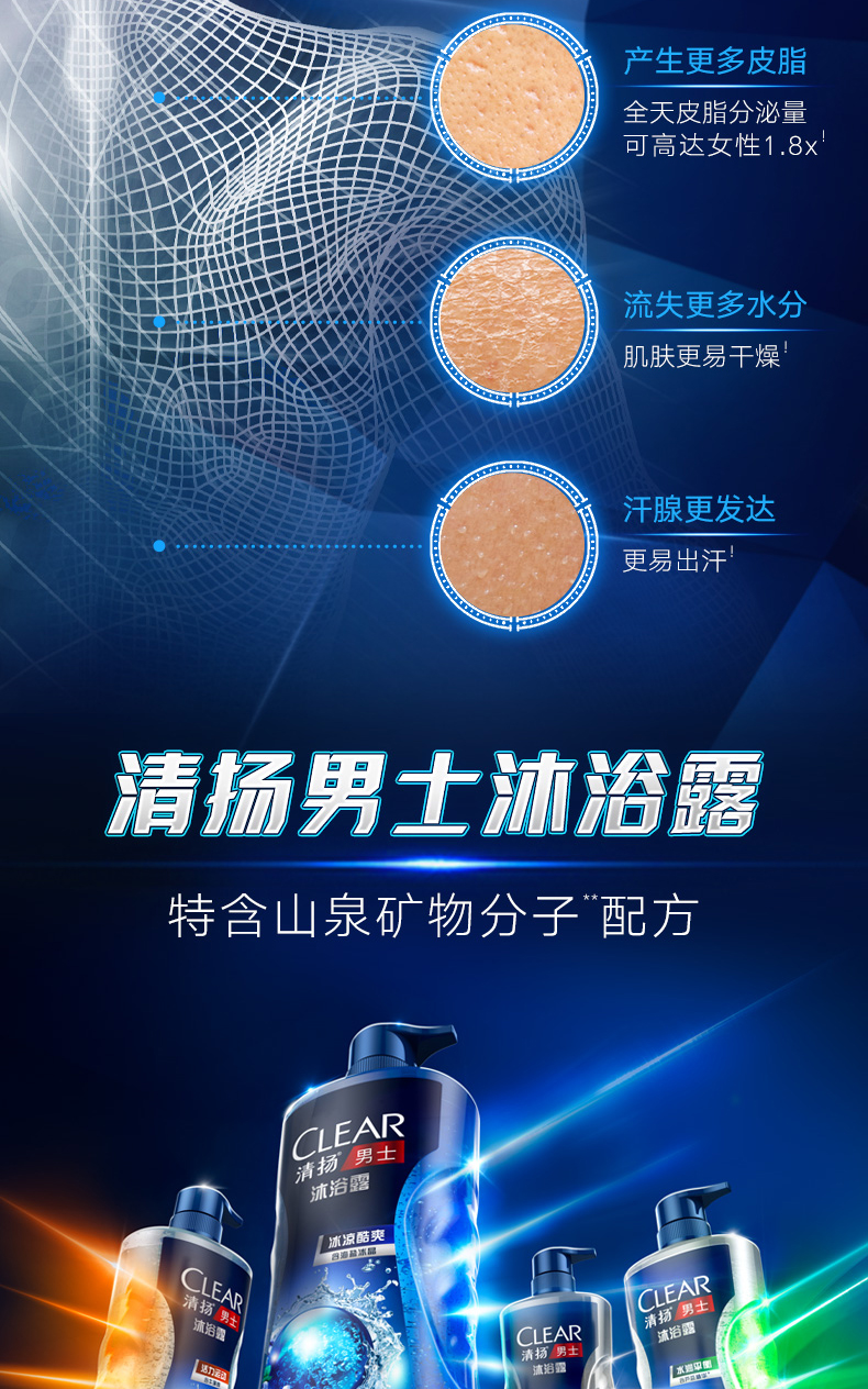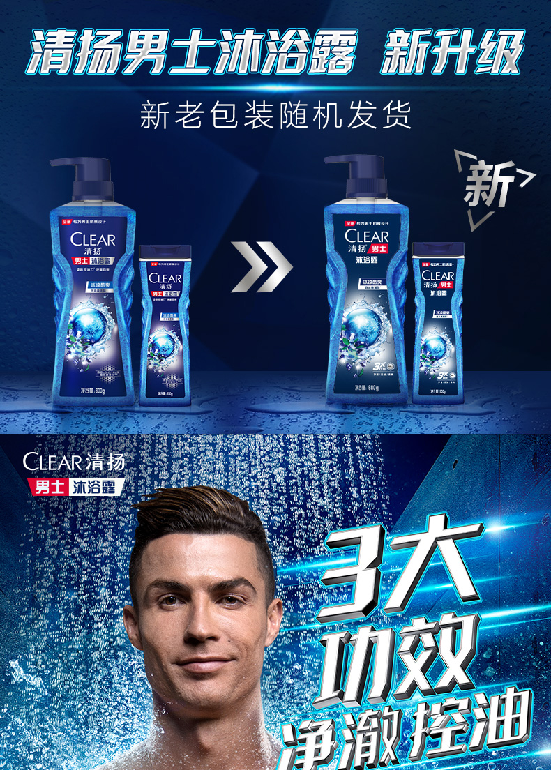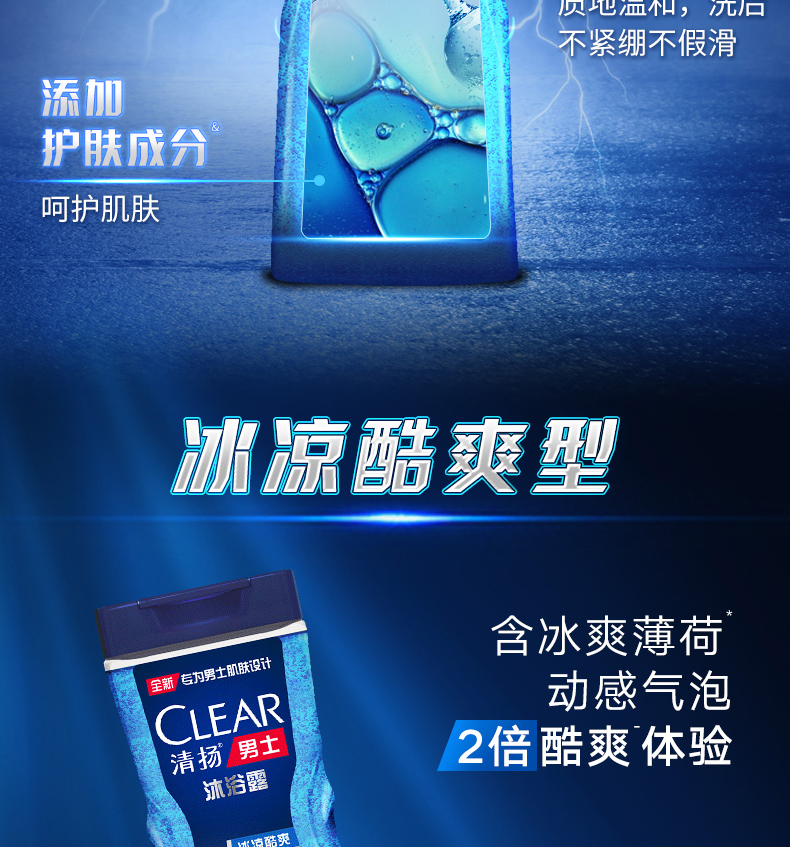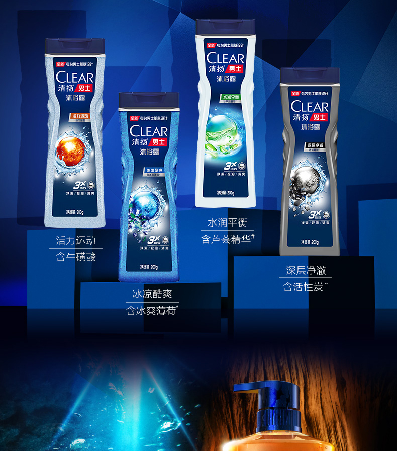 清扬男士平衡控油沐浴露冰凉酷爽200G单位:瓶 混色