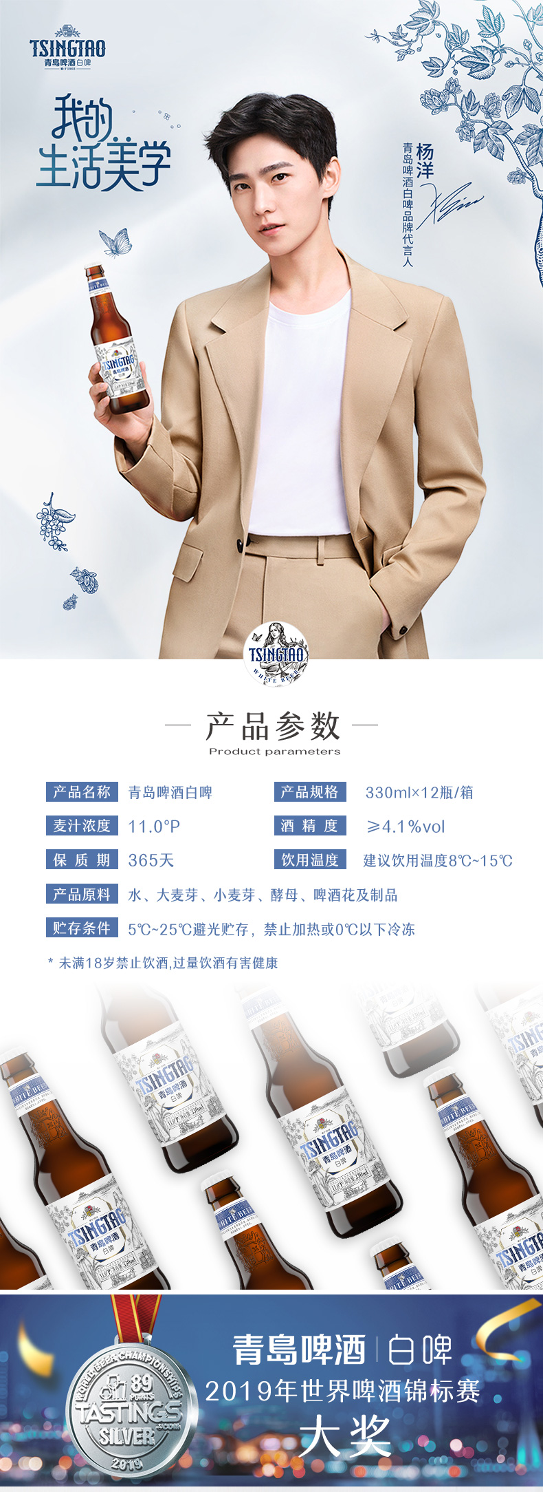 青岛啤酒 全麦白啤精酿啤酒 330ml*12瓶 红色