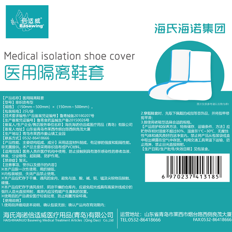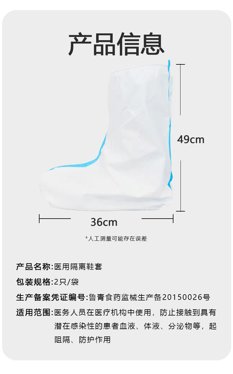 海氏海诺倍适威一次性隔离鞋套 无纺布防护鞋套加厚防水耐磨长筒高帮靴套高筒1双 本白色