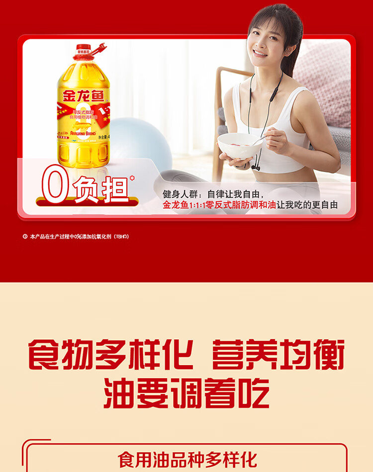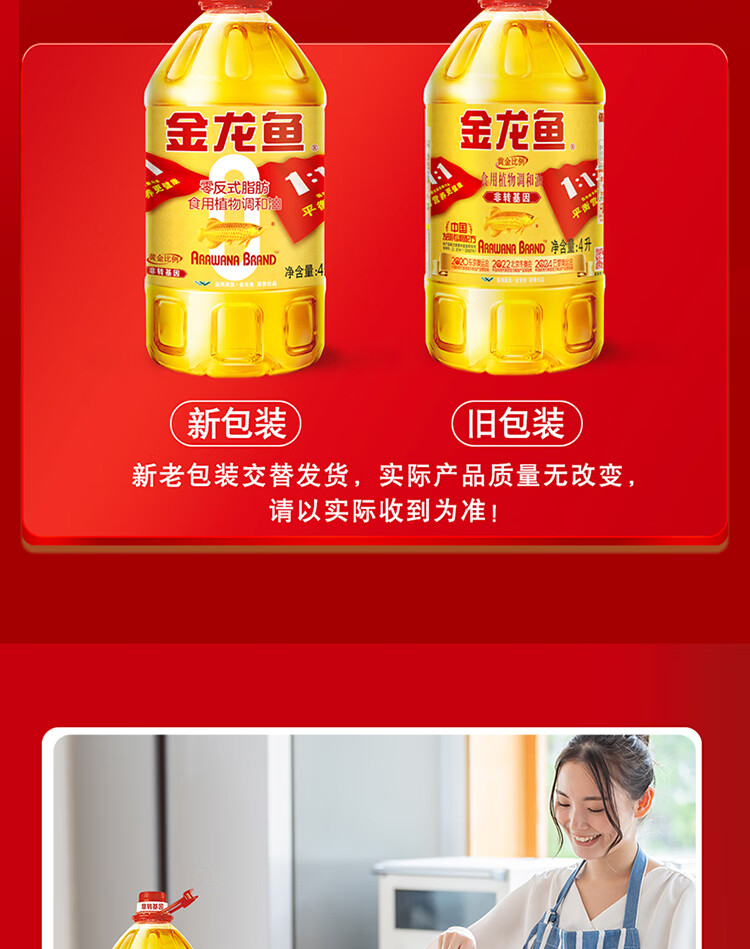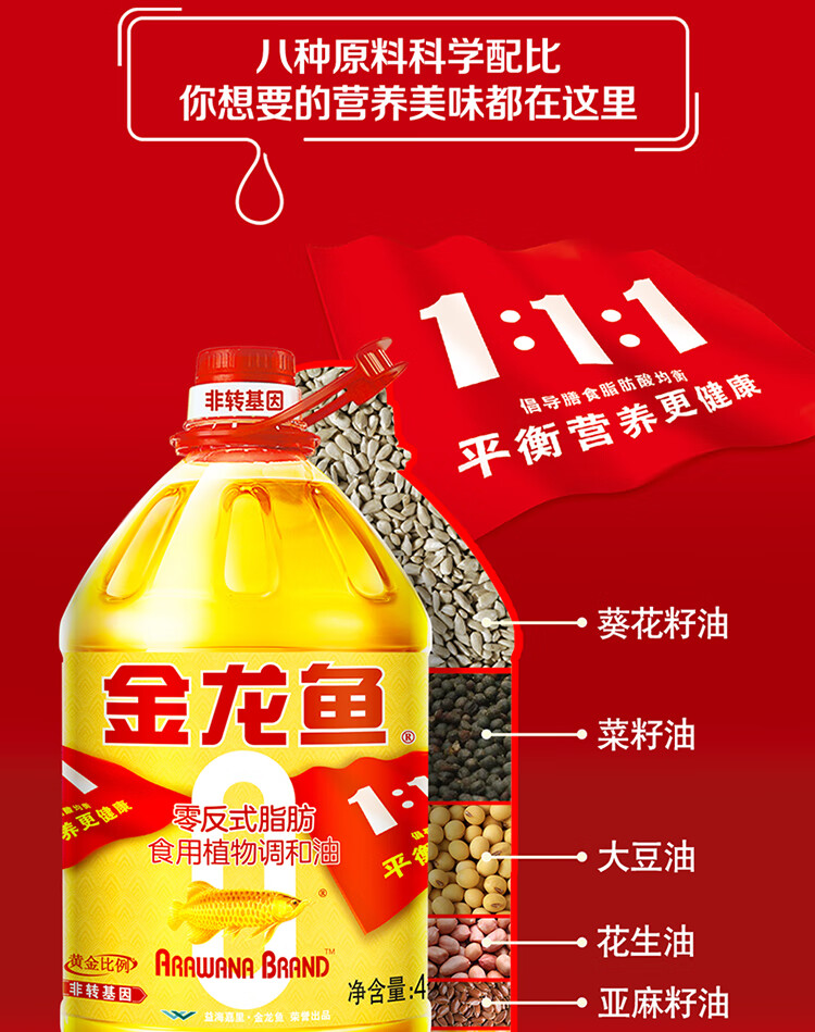 金龙鱼 黄金比例零反式脂肪 4L 食用油 黄色(单位:桶)