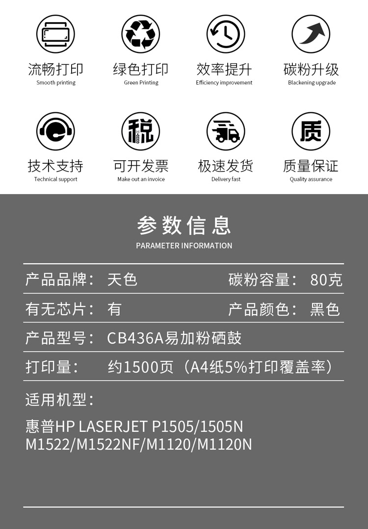 天色 硒鼓 CB436A 标准容量(适用于 HPLaserJetM1120/M1120n/M1522n/M1522nf/P1505n) 黑色