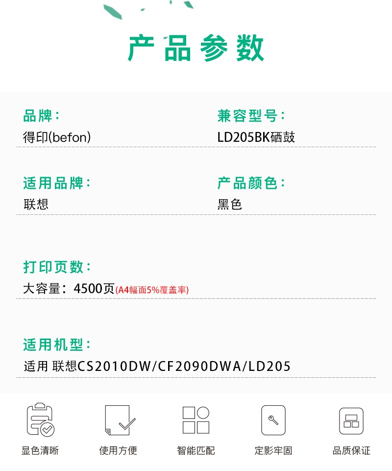 得印LD205BK黑色大容量硒鼓适用联想CS2010DW CF2090DWA LD205单位:支 黑色