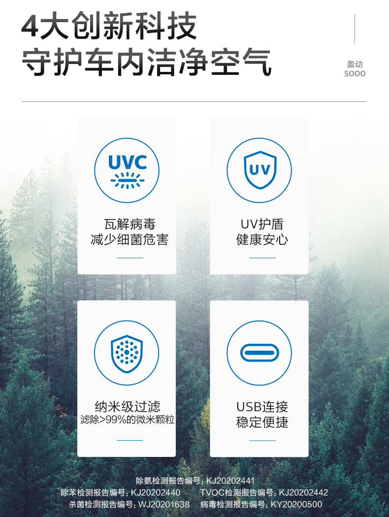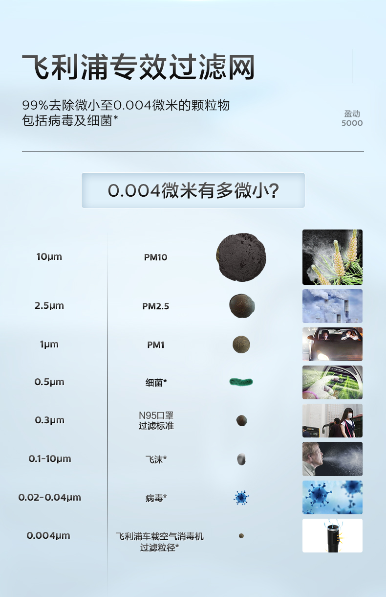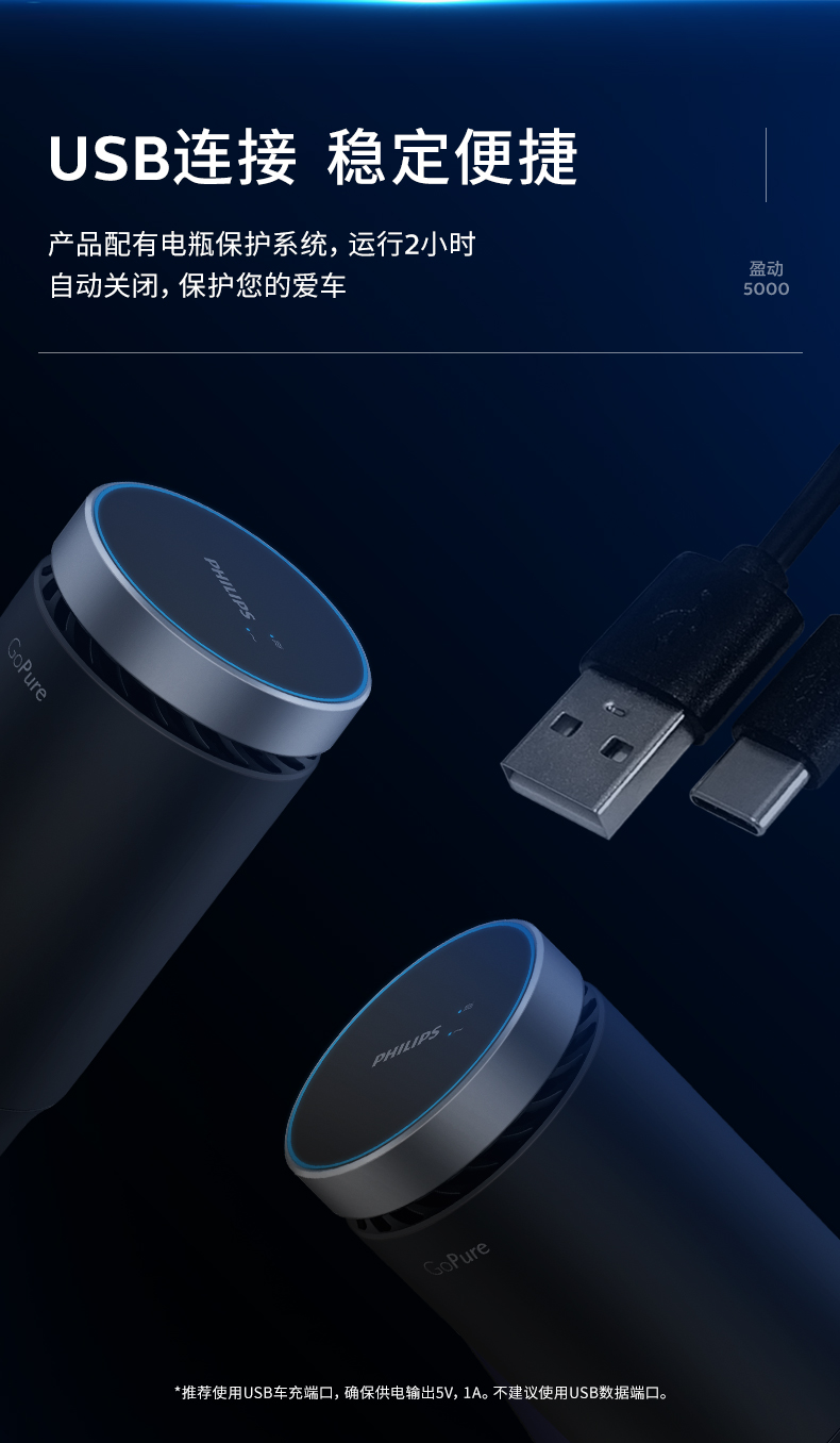 飞利浦(PHILIPS)车载空气净化器 HEPA/HESA 汽车空气净化器 新车过滤细菌UVC瓦解病毒危害GP5601 黑色