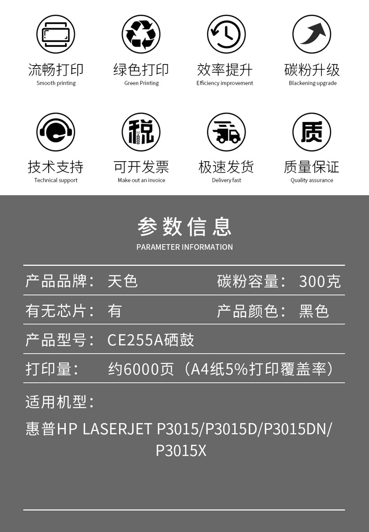 天色 硒鼓 CE255A 标准容量(适用于 HPLaserJetM525dn/M525f/M525c/P3015/P3015d) 黑色