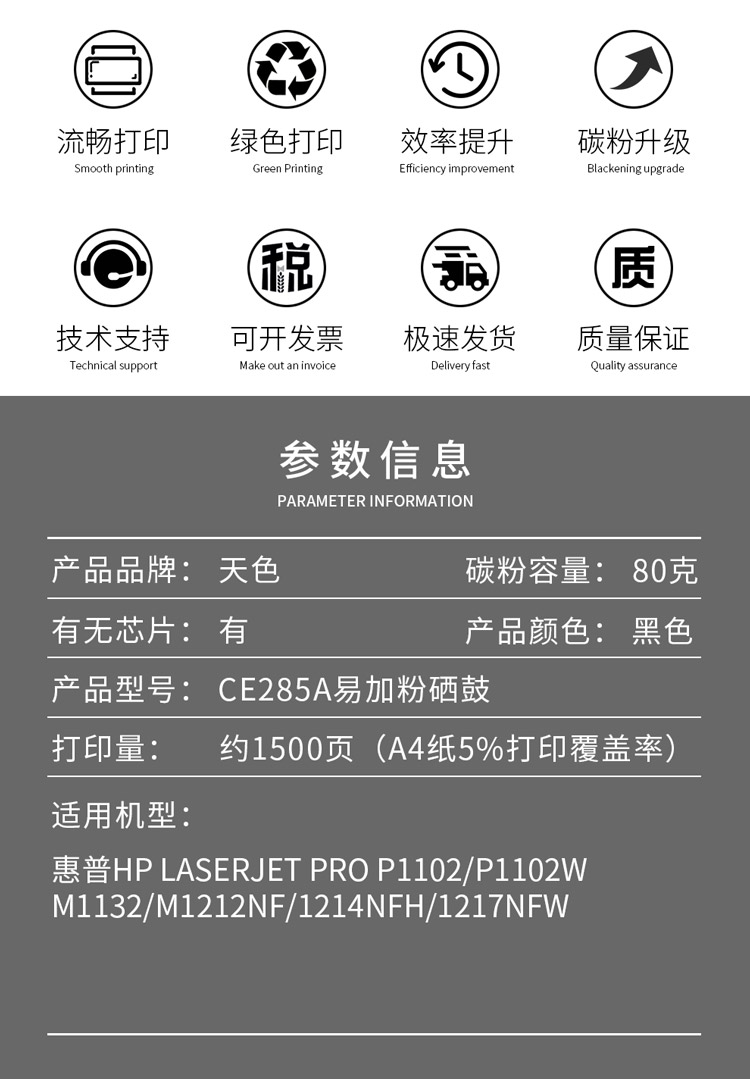 天色 硒鼓 CE285A 易加版(适用于 HPLaserJetP1102/M1132/1212NF) 黑色