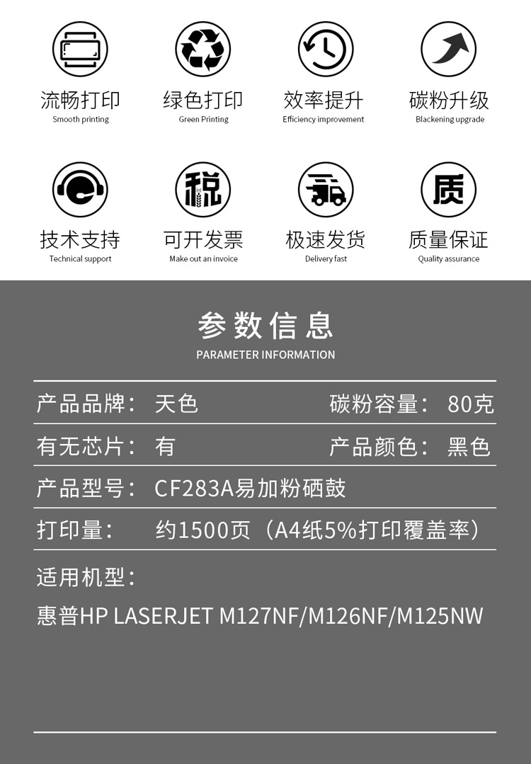 天色 硒鼓 CF283A 易加版(适用于 HPLaserJetProM201dw/M201n/M125a/M125nrw/M125nw) 黑色