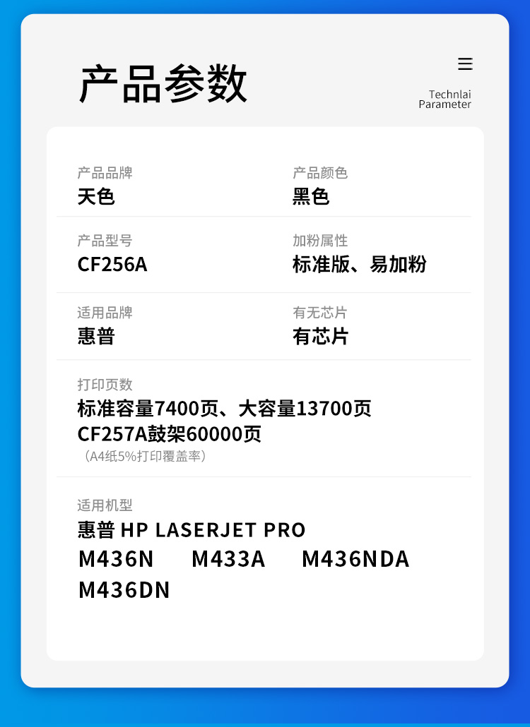 天色 CF256A 适用惠普HP LaserJet MFP M436n 墨粉盒 1.00 只/支 (计价单位:支) 黑色