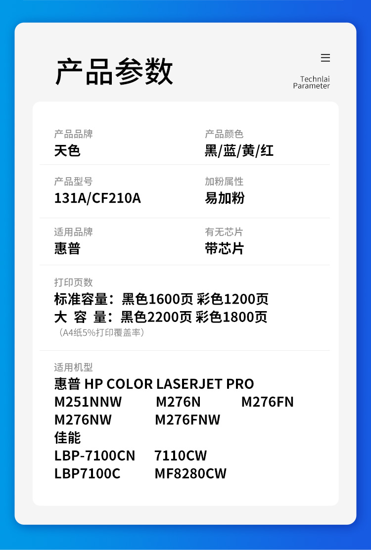 天色 硒鼓 CF210/1/2/3A 易加版 大容量 (适用于HpLaserjetProM251n/M251n/M276n/M276nw/M475dw) 黄色