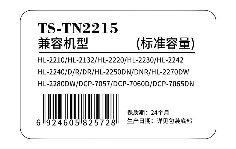 天色 粉盒 TN2215 (适用于 BrotherHL-2240/2250/2220/2230/2270/2280) 黑色