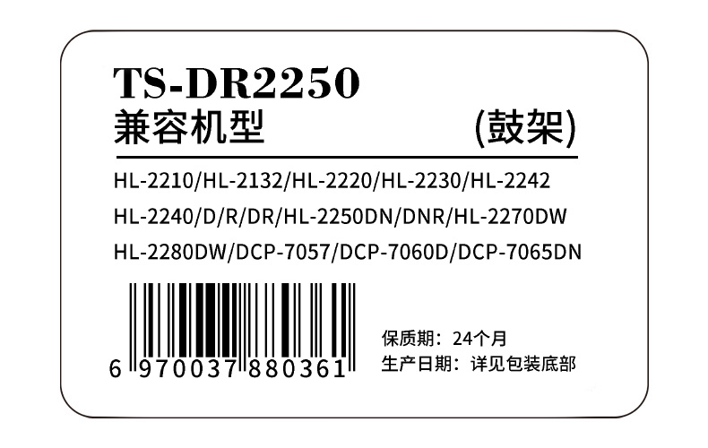 天色 硒鼓 DR2250 (适用于 BrotherHL-2240/2250/2220/2230/2270/2280/2890) 黑色