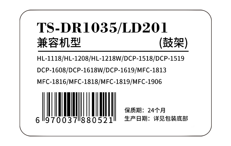 天色 DR1035/LD201 打印量约10000页 适用兄弟1518 1818等 硒鼓架 1.00 只/支 (计价单位:支) 黑色