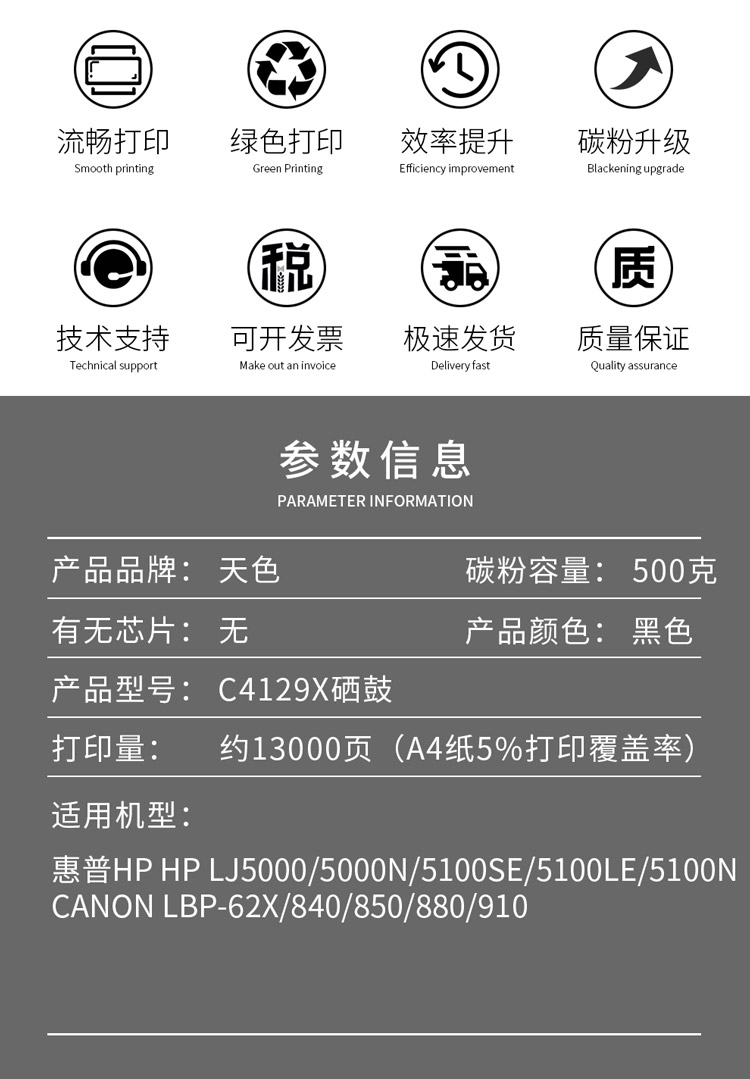 天色 硒鼓 C4129X (适用于 HPLaserJet5100/5100DTN/5100LE/5100SE/5100TN) 黑色