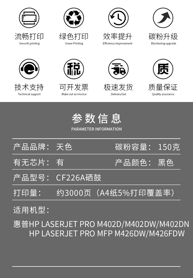 天色 硒鼓 CF226A (适用于 HPLaserJetProM402d/M402dn/M402dne/M402dw/M402n/M426fdn/M426fdw) 黑色