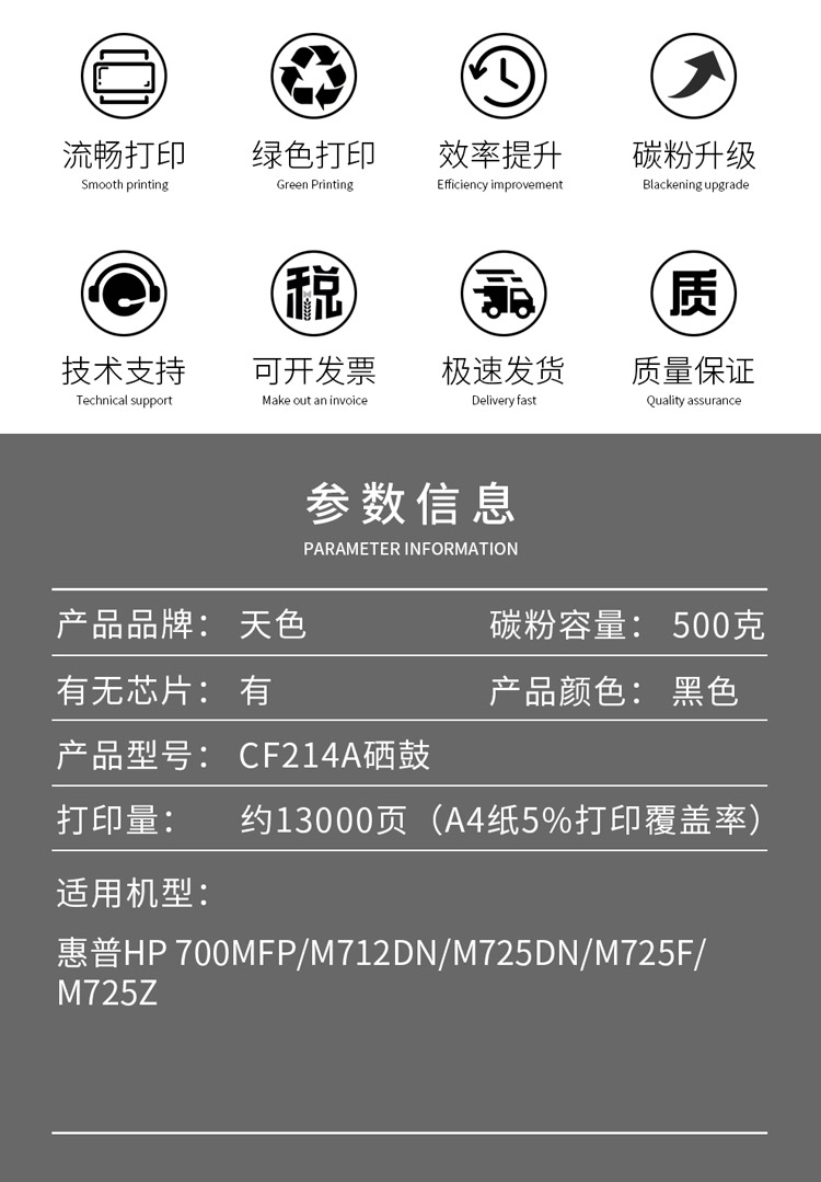 天色 硒鼓 CF214A (适用于 HPLaserJetEnterprise700MFPM712xh) 黑色