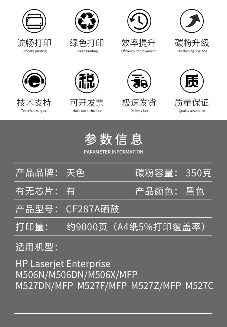 天色 硒鼓 CF287A (适用于 HP M506dn/M506x/M506n/M527z) 黑色