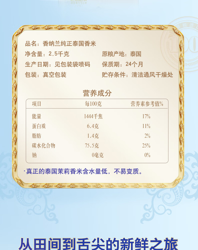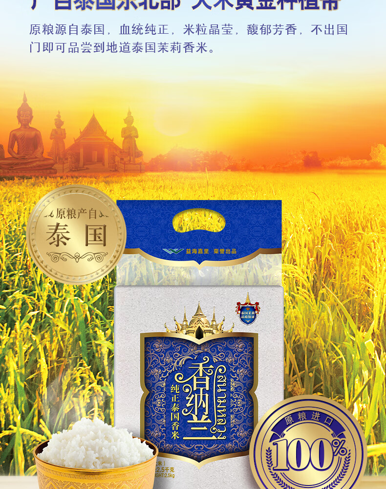 金龙鱼 香纳兰纯正泰国香米2.5KG 袋 白色