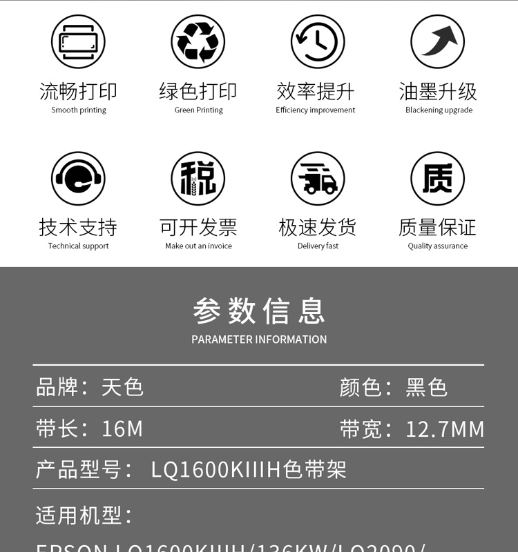 天色色带架LQ1600KIIIH(单位:个)适用爱普生LQ2090 FX2190 FX2175 LQ136KW(10个起订) 黑色