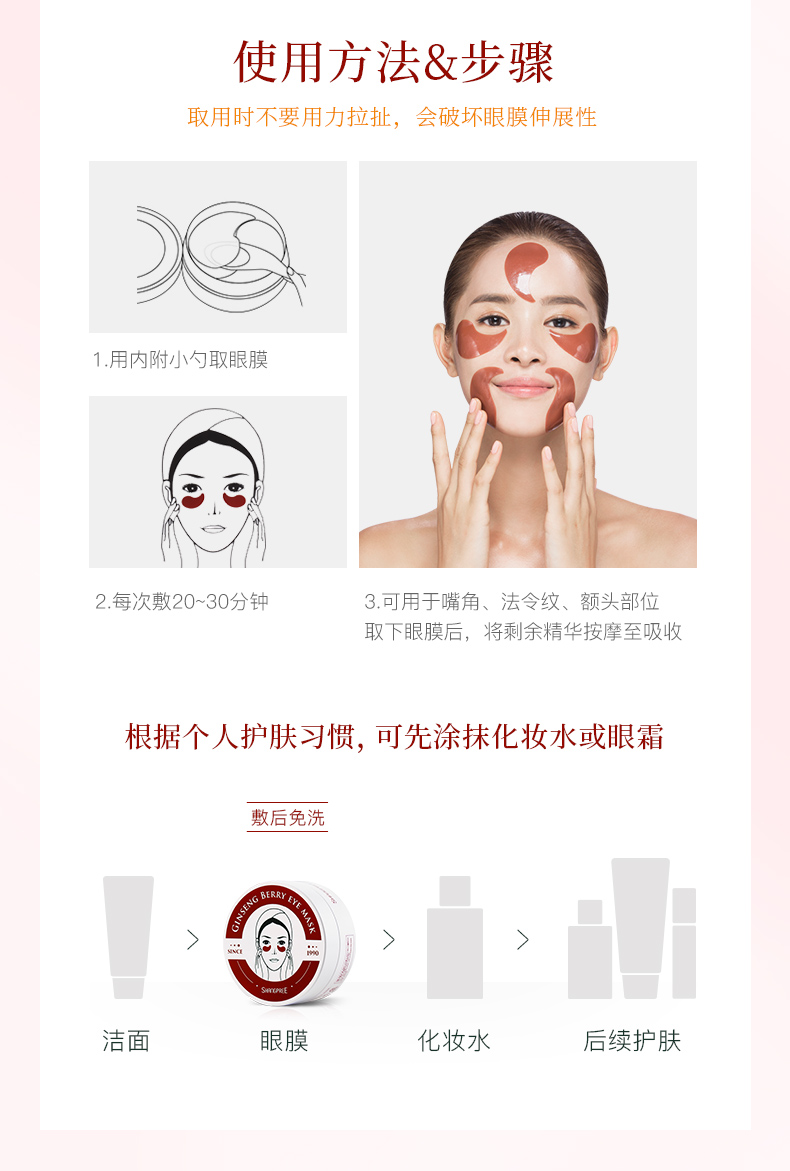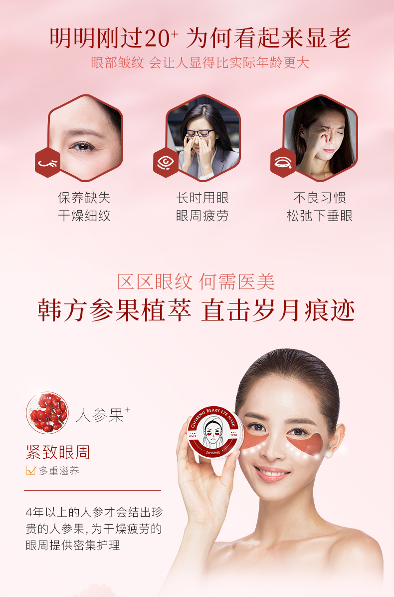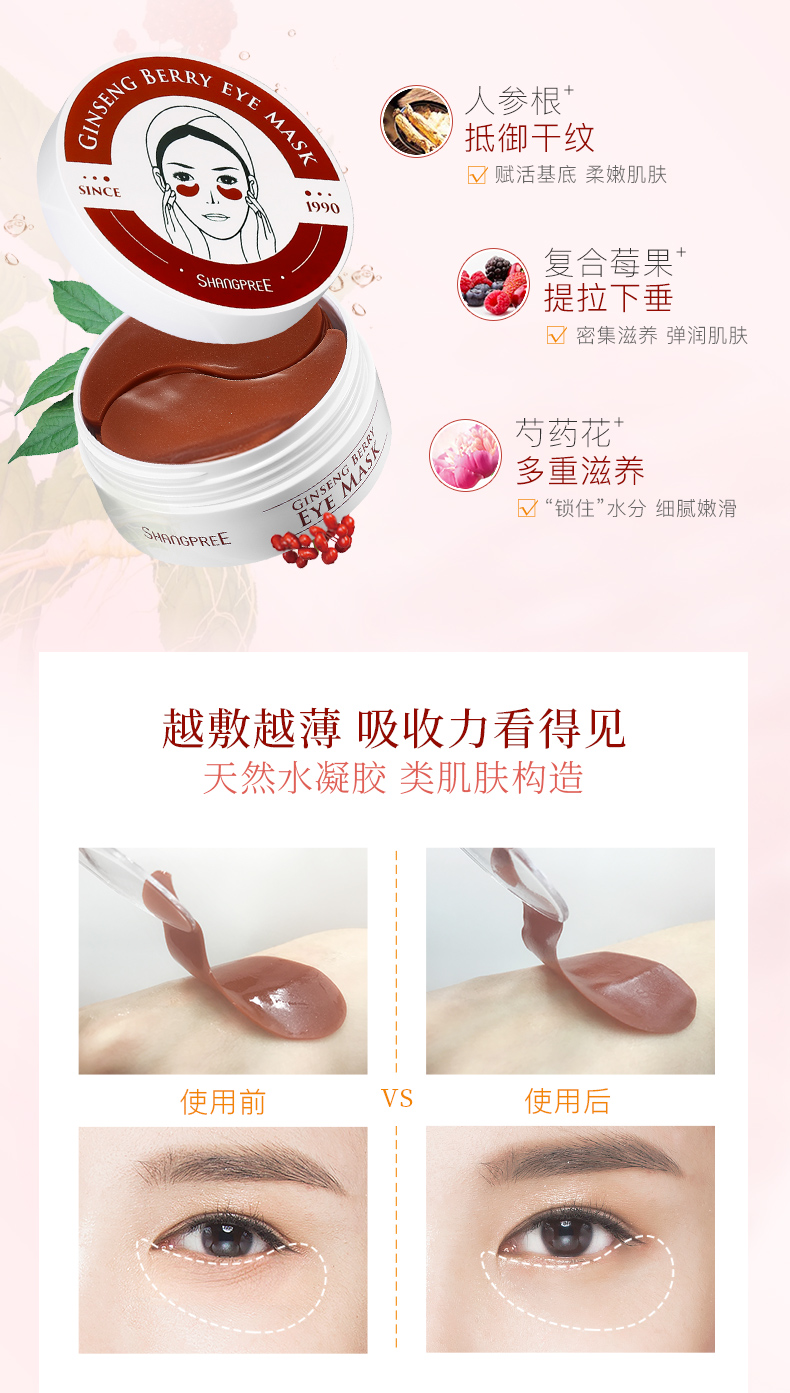 香蒲丽人参果修复眼膜60片 粉红色