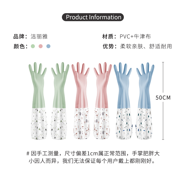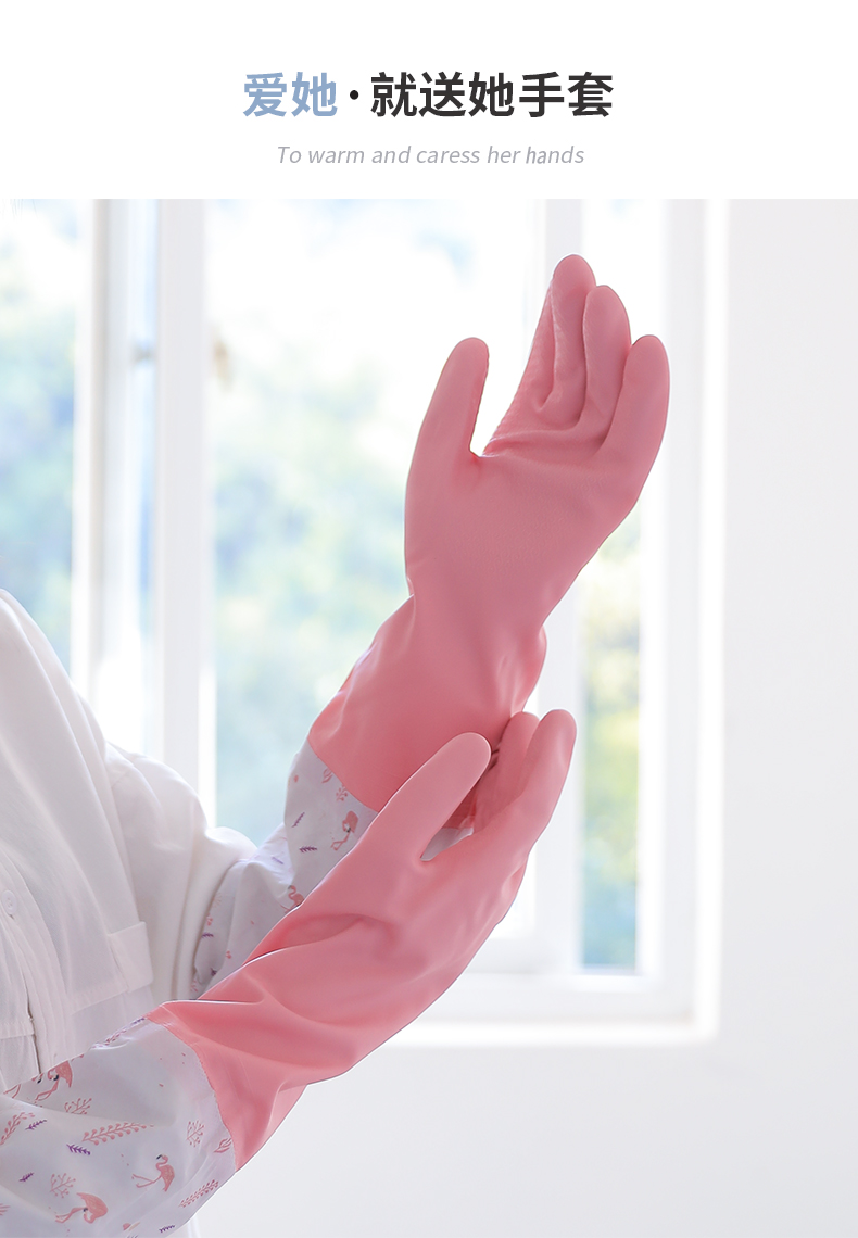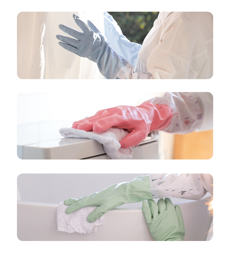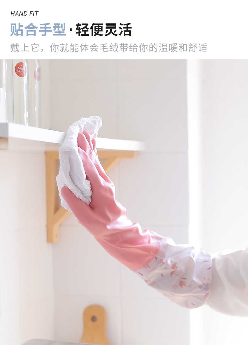 洁丽雅(Grace) 加绒洗碗手套3双装 长袖家务清洁橡胶皮耐用洗衣厨房洗碗 M码 混色