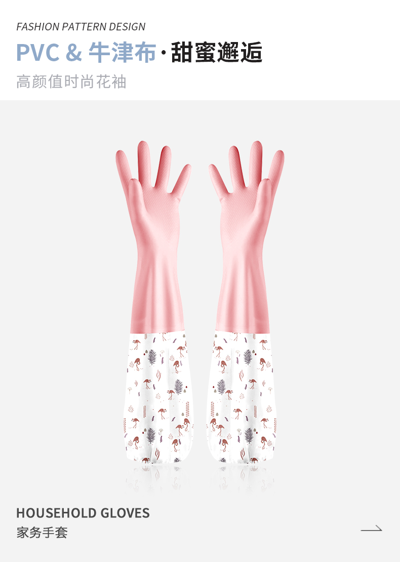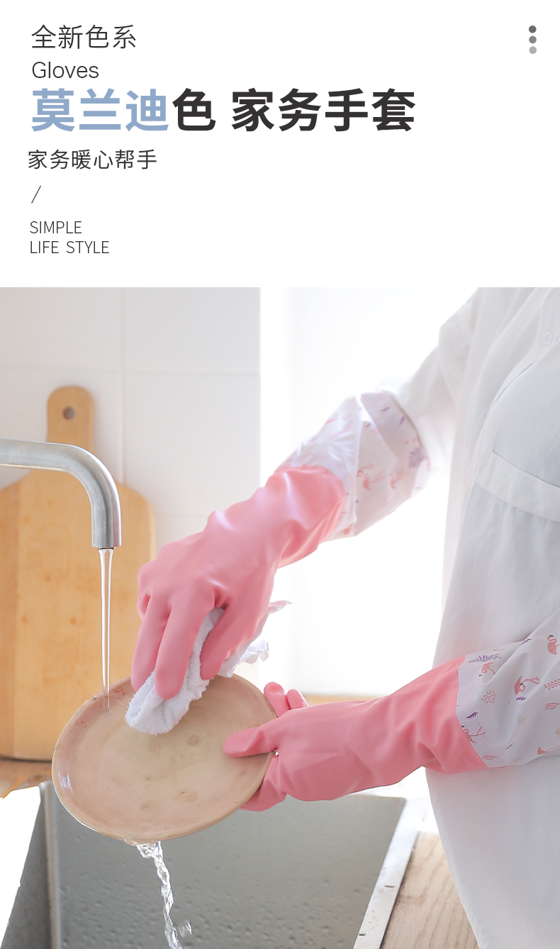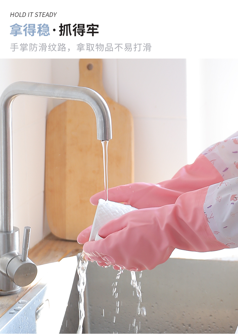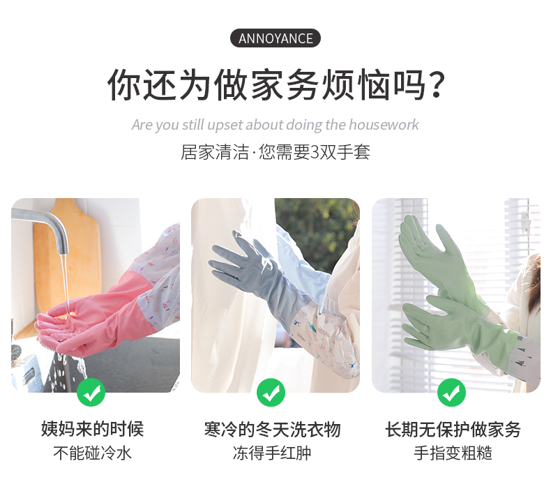洁丽雅(Grace) 加绒洗碗手套3双装 长袖家务清洁橡胶皮耐用洗衣厨房洗碗 M码 混色