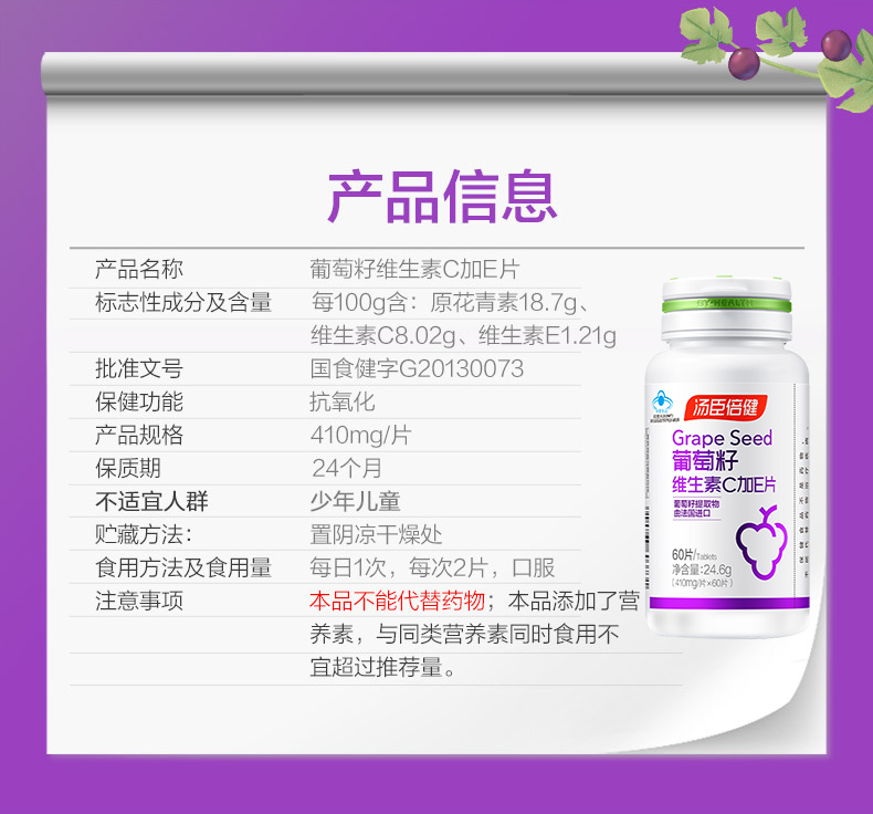 汤臣倍健葡萄籽维生素C加E片(60片) 紫色