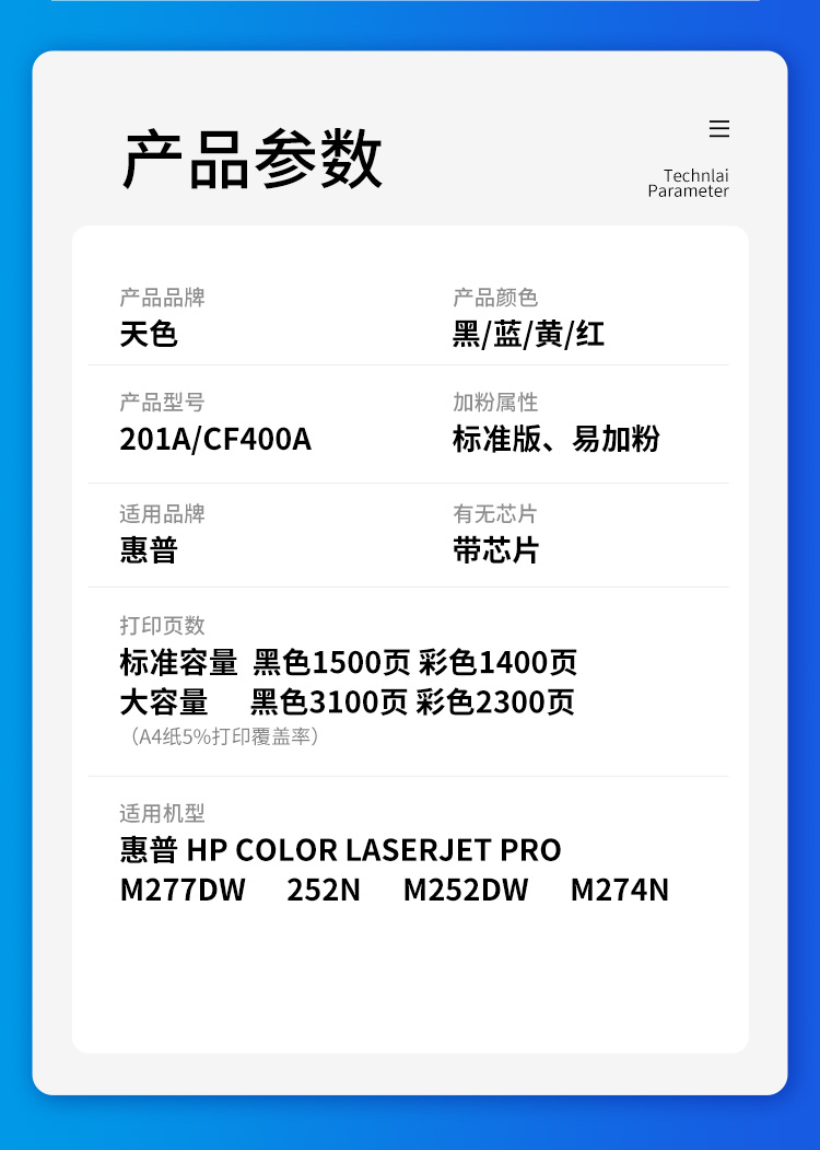 天色 硒鼓 CF400A/1/2/3A (适用于HPLaserJetM575dn/M575f/M575c/M570dn/M570dw) 蓝色