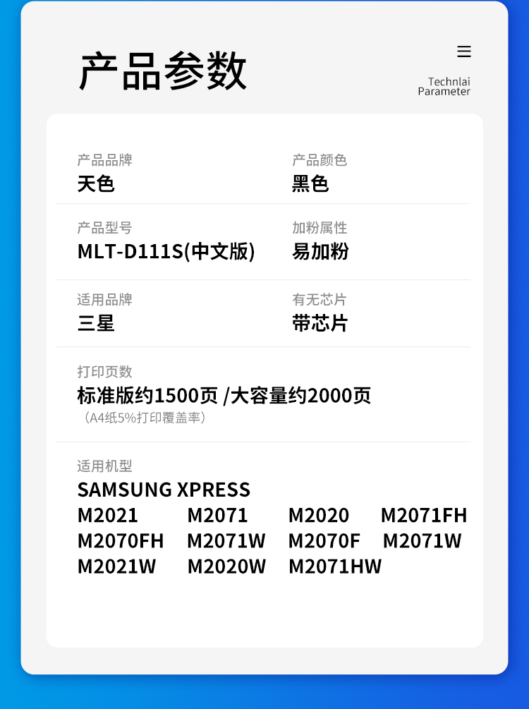 天色 硒鼓 D111S 易加版(适用于 SamsungM2020/M2020W/M2021/M2021W/M2022/M2022W) 黑色