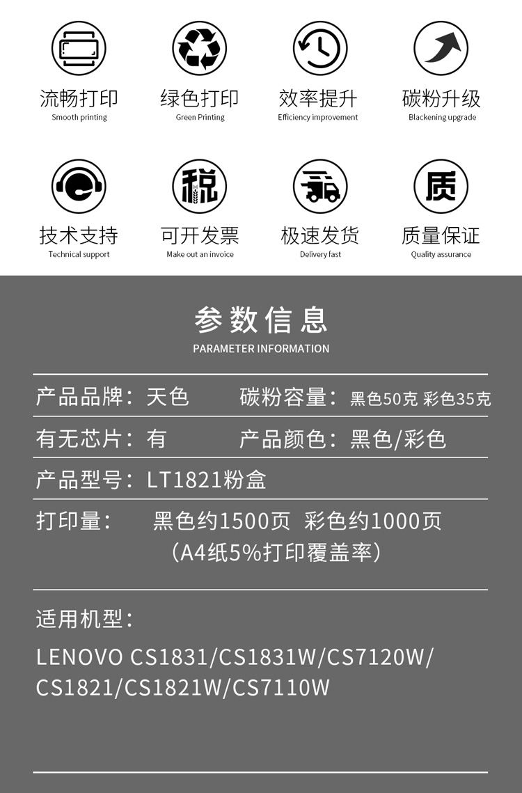 天色cm7120w墨盒适用联想cs1831硒鼓1821 1831W硒鼓cm7110W墨粉LT1821 黄色