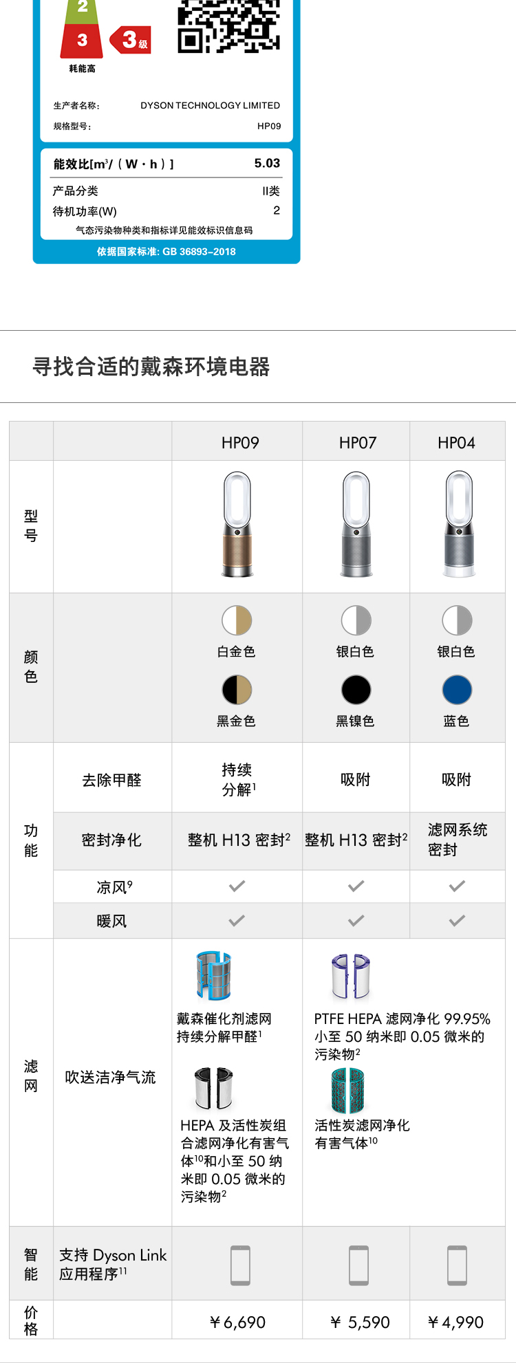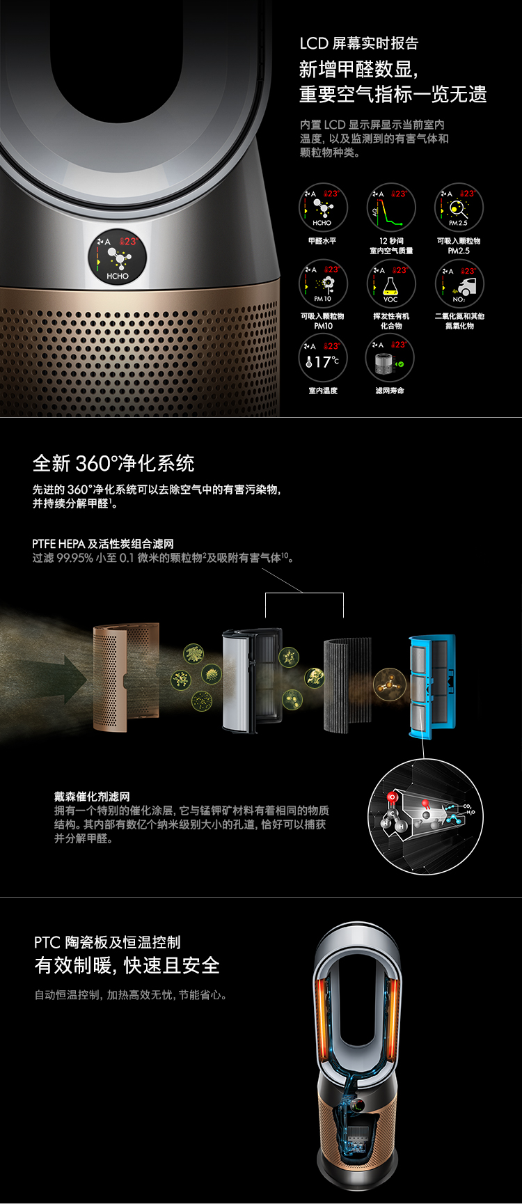 戴森 DYSON HP09 多功能空气净化暖风扇 台 黑金色