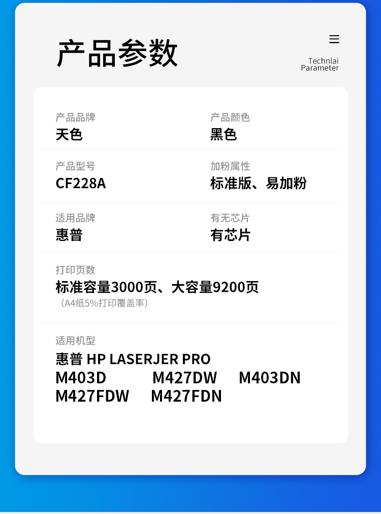 天色 CF228A 约3000页 适用惠普M403D 硒鼓 1.00 只/支 (计价单位:支) 黑色