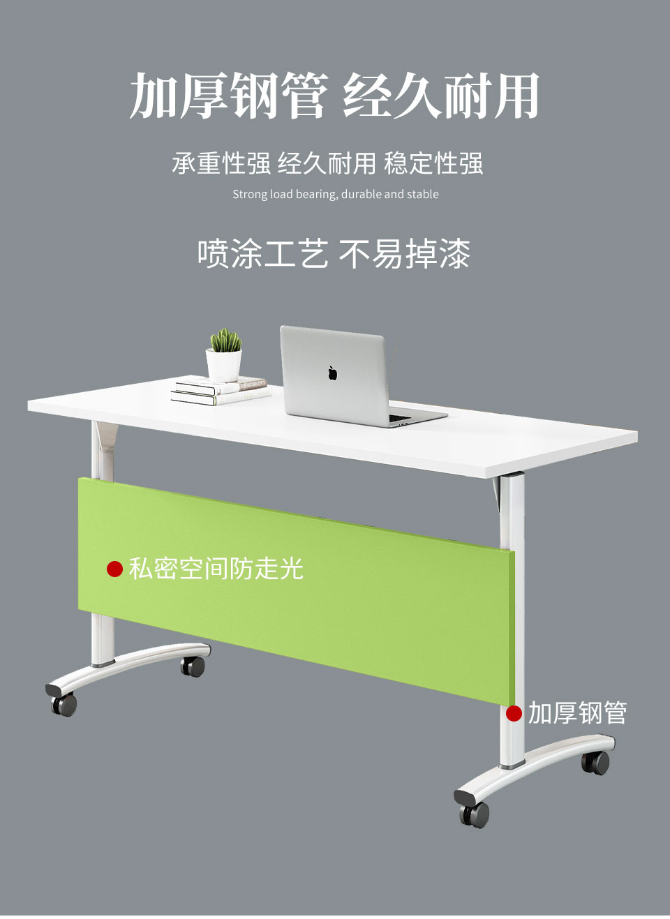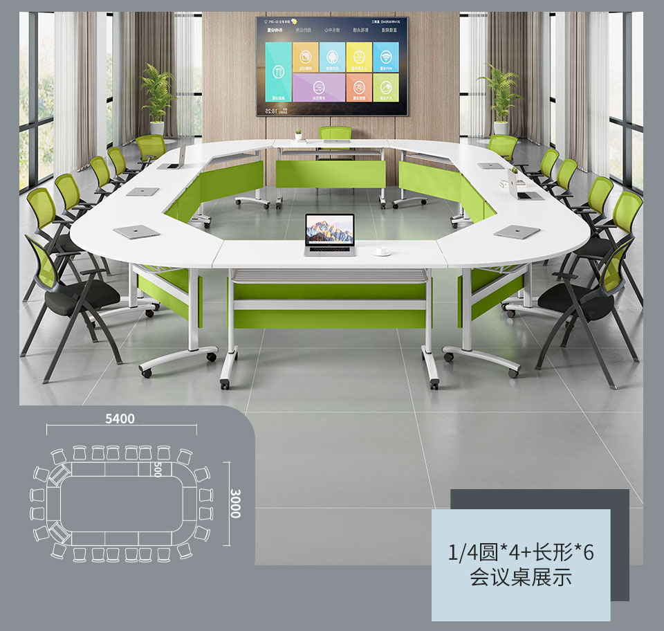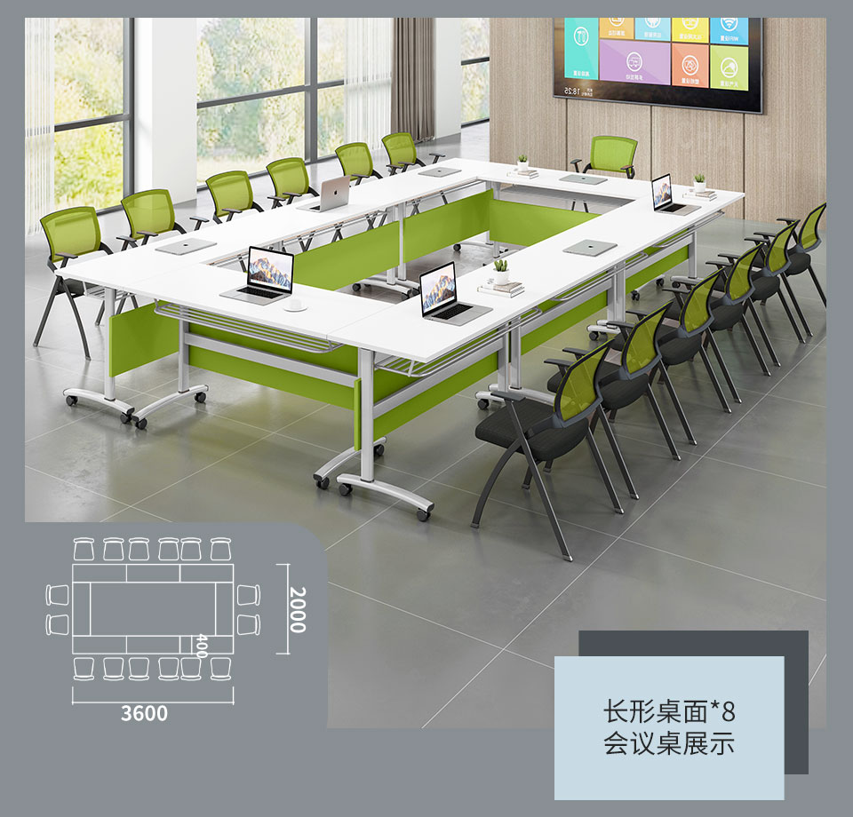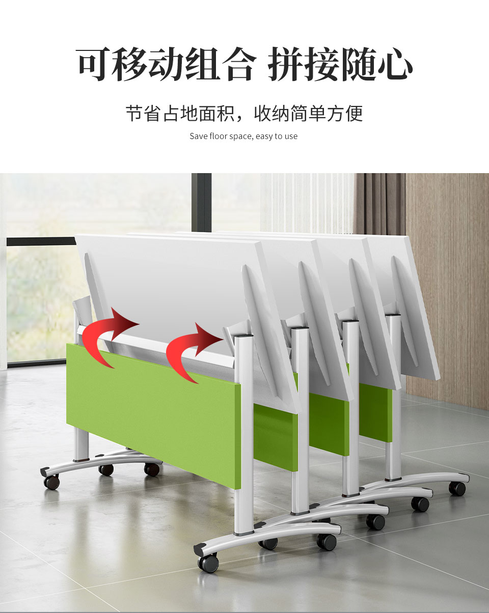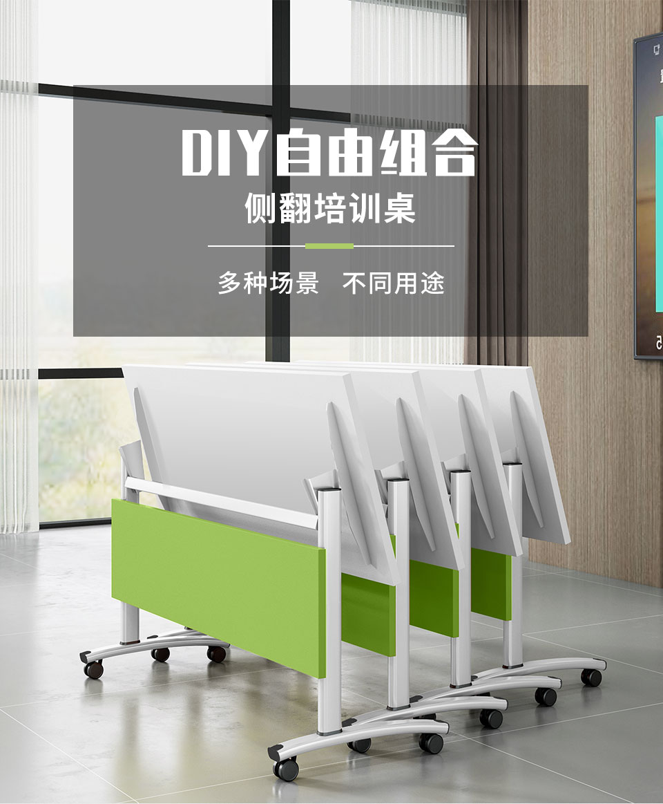 茧裂培训桌折叠会议桌椅组合长条桌可移动长桌自由组合条桌拼接会议桌活动翻板桌辅导班课桌椅 清新绿挡板(白色架) 长1.2m*宽0.5m 绿色