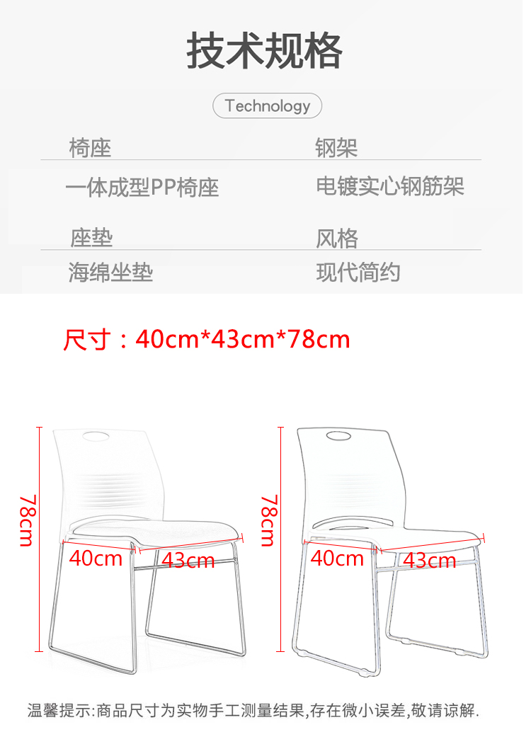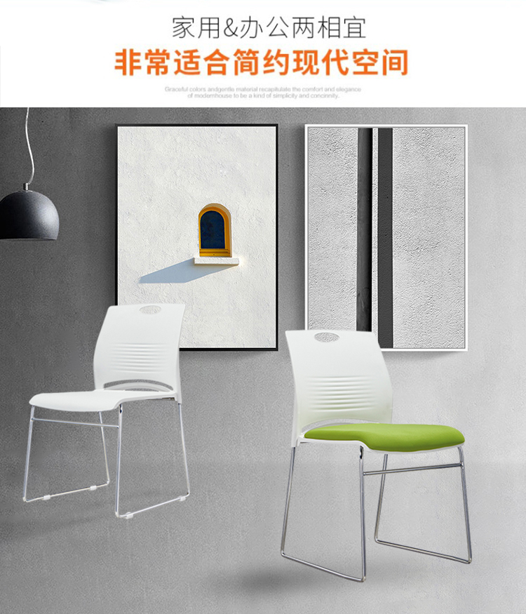 悦山 简约培训椅电脑椅会议椅课桌椅办公椅 白色带绿色软垫 绿色