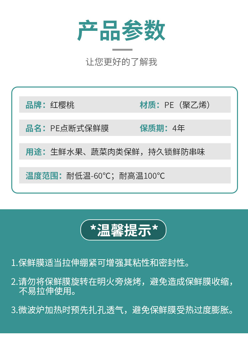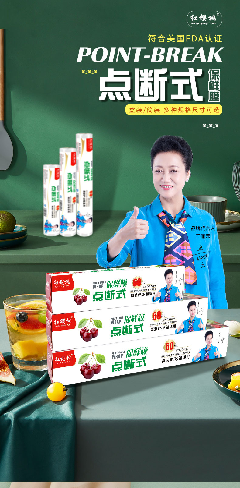 红樱桃家用经济装点断式保鲜膜(盒装) 大中小组合300米(盒装)