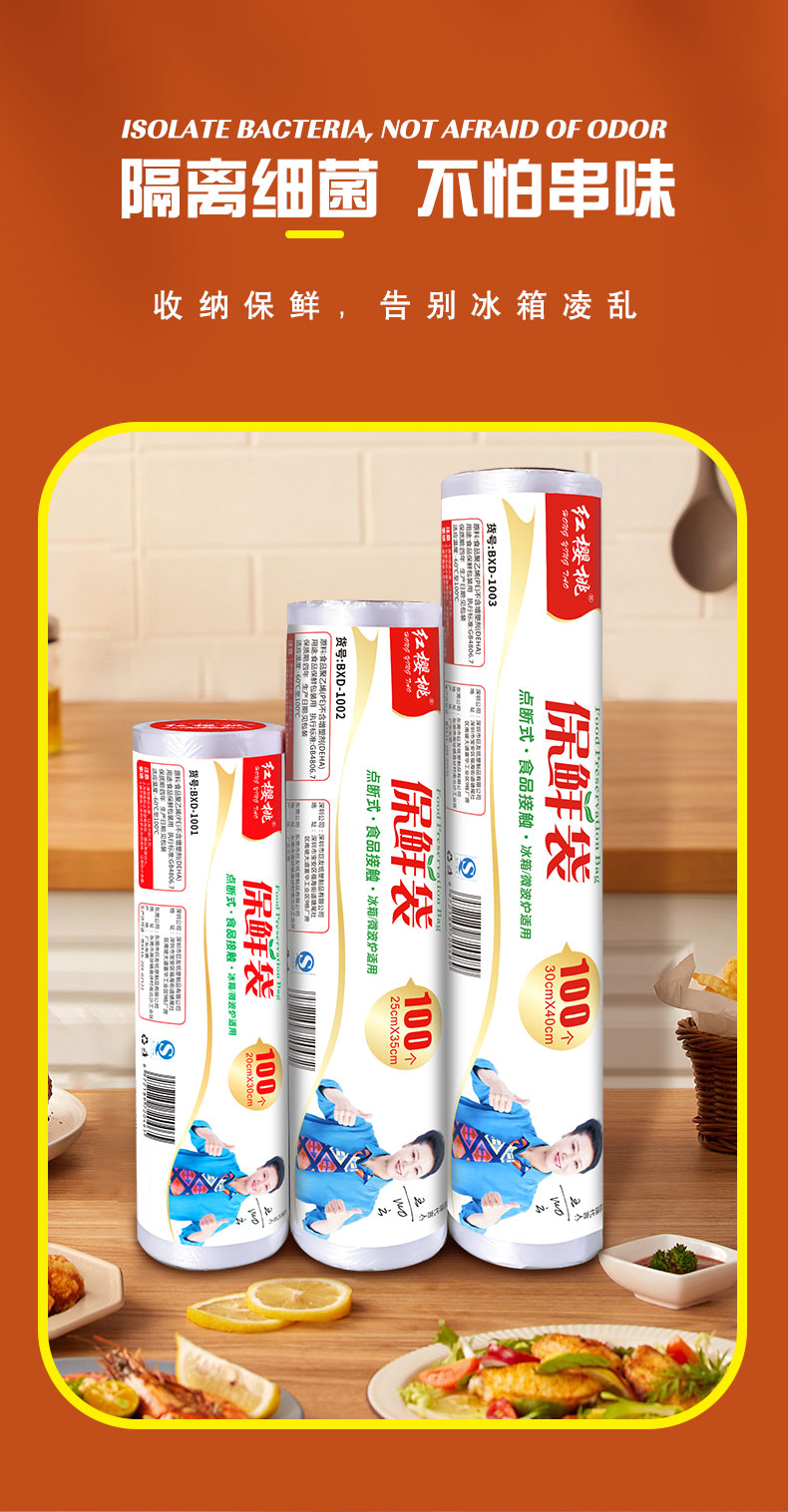 红樱桃家用加厚保鲜袋组合装 大、中、小号保鲜袋组合600只装