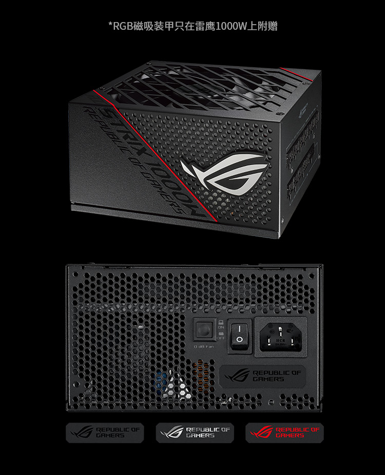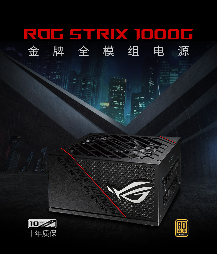 华硕(ASUS)ROG STRIX 雷鹰1000W金牌全模电源(双路CPU供电/10年质保/金牌认证/全日系电容/定制化贴纸) 黑色