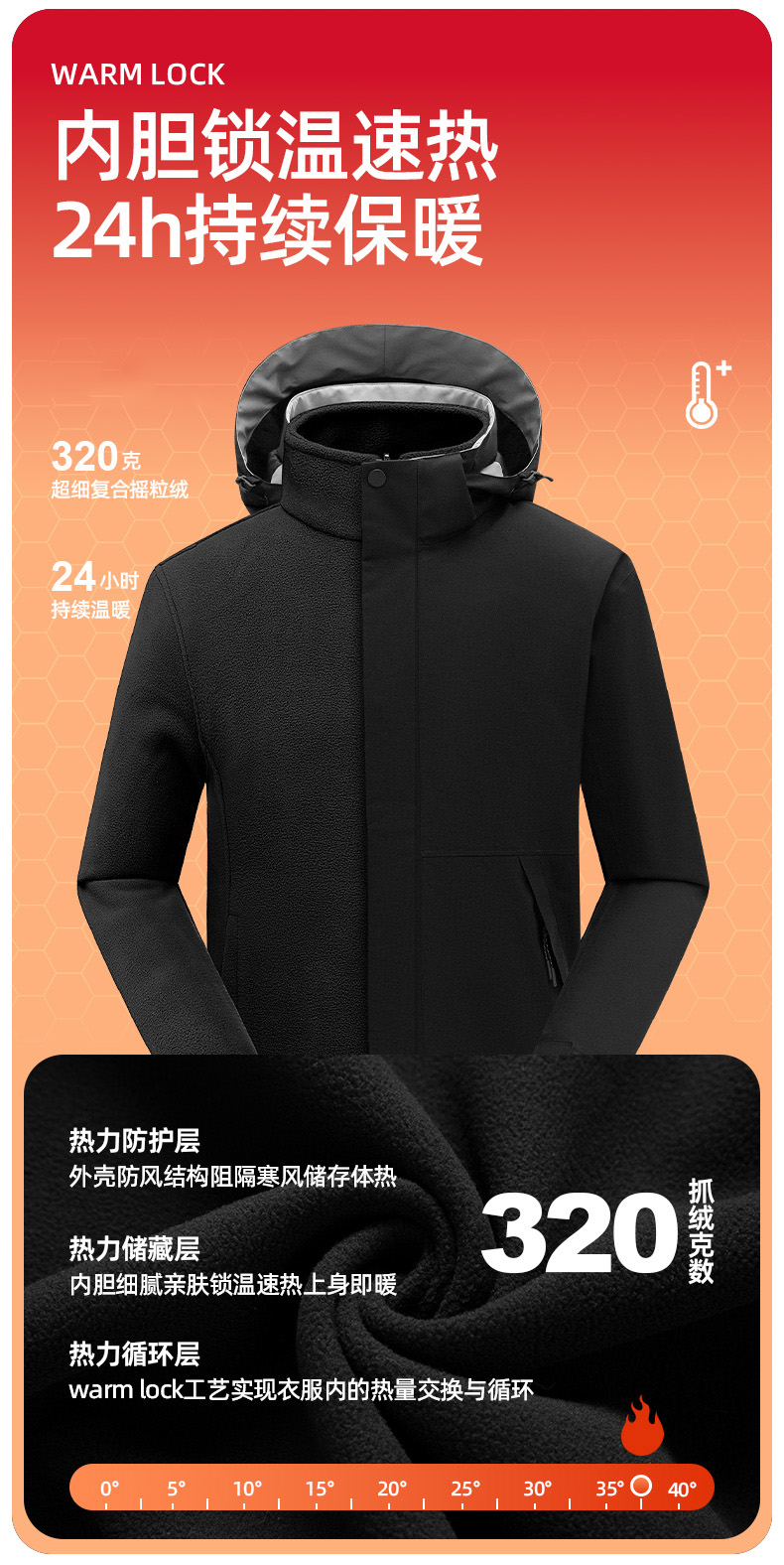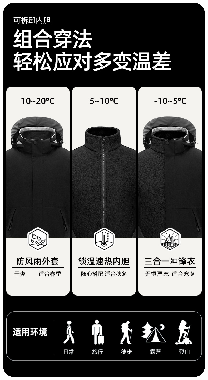 丰讯情侣款冲锋衣保暖外套摇粒绒 三合一可脱卸FXTF230831(单位:件) 男女同款白桦灰 2XL