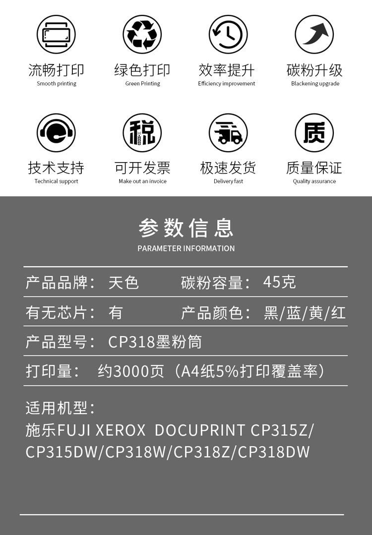 天色 粉盒 兼容施乐CP318(适用于Fuji xerox DocuPrint CM315Z CP315DW CP318Z CP318W) 黑色