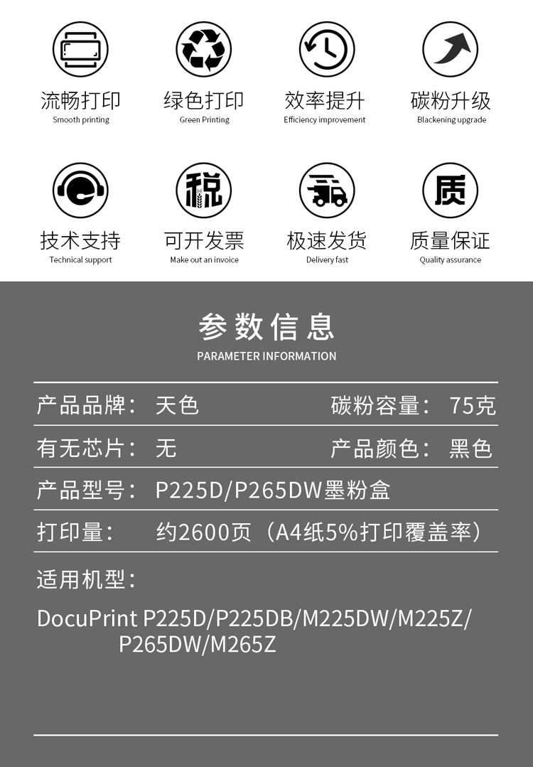 天色 粉盒 P265DW (适用于 XeroxDocuPrintP225D/P225DB/M225DW/M225Z/P265DW/M265Z/m228b) 黑色